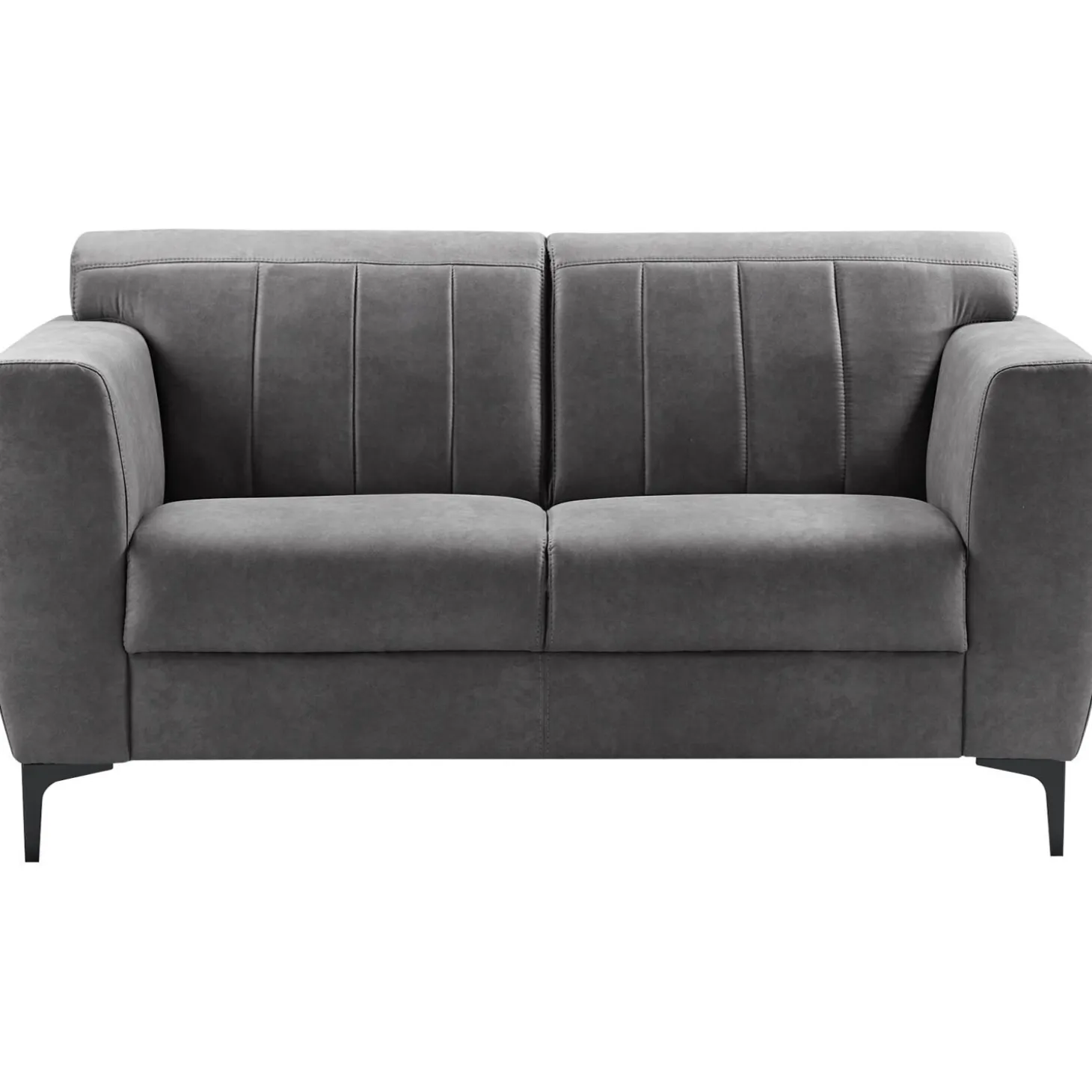 De bank is uitgevoerd in een donkergrijze microvezelstof. Deze stof met luxe uitstraling is opgebouwd uit synthetische vezels, waardoor deze erg sterk is. Desondanks voelt hij erg zacht aan. Bovendien is de stof makkelijk in onderhoud, en erg geschikt voor intensief gebruik. De zwarte metalen poten voegen een vleugje elegantie en duurzaamheid toe aan het geheel.