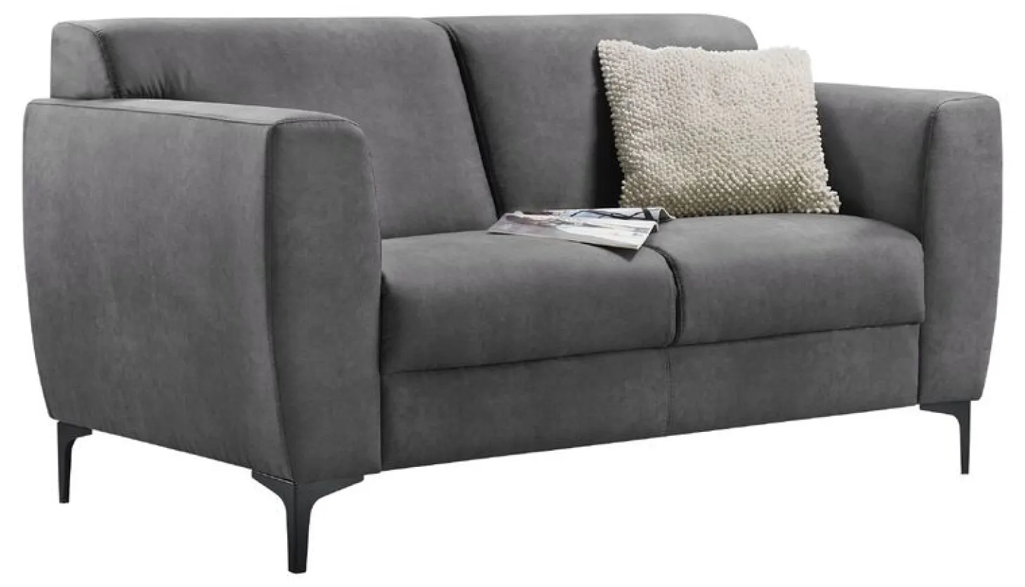 De banken zijn uitgevoerd in een donkergrijze microvezelstof. Deze stof met luxe uitstraling is opgebouwd uit synthetische vezels, waardoor deze erg sterk is. Desondanks voelt hij erg zacht aan. Bovendien is de stof makkelijk in onderhoud, en erg geschikt voor intensief gebruik. De zwarte metalen poten voegen een vleugje elegantie en duurzaamheid toe aan het geheel.