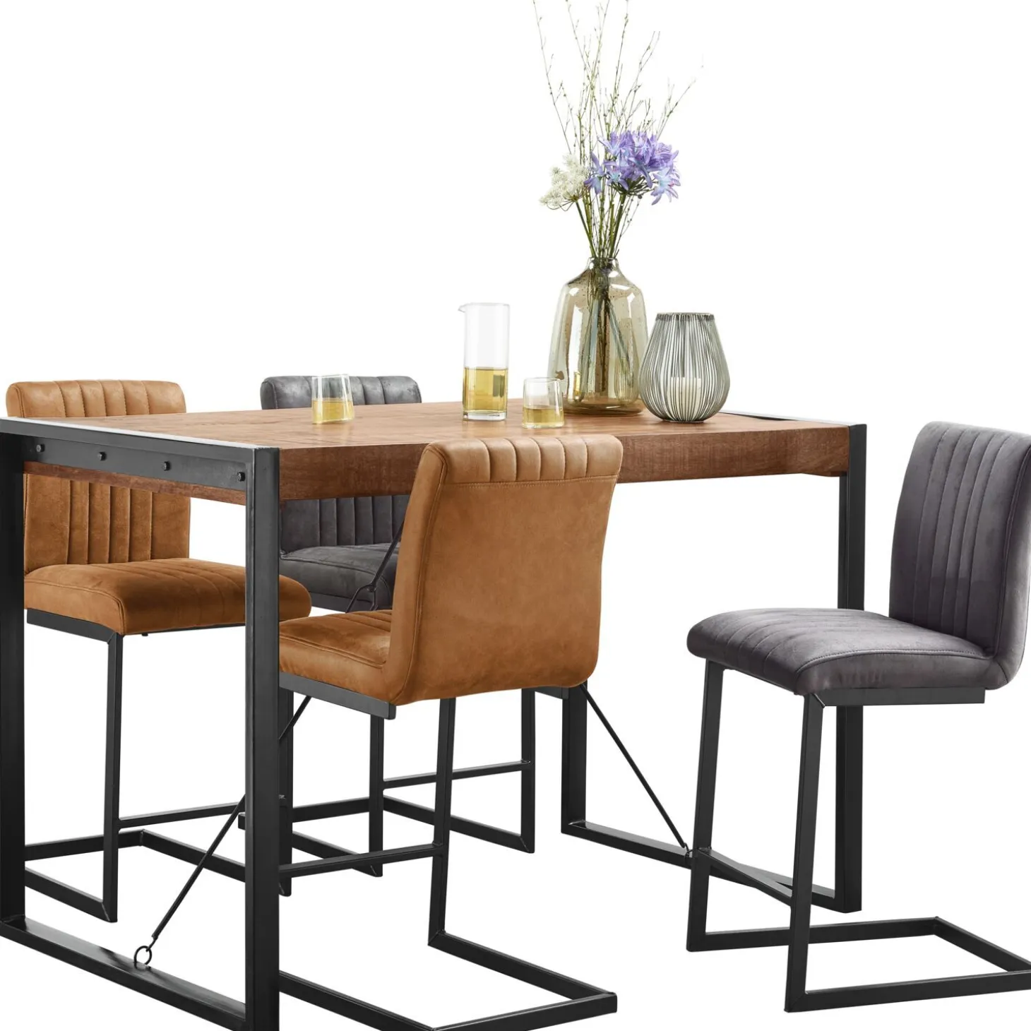 | Uitvoering | Uitgevoerd in mangohout in de kleur new weather barn met zwart metalen onderstel. |