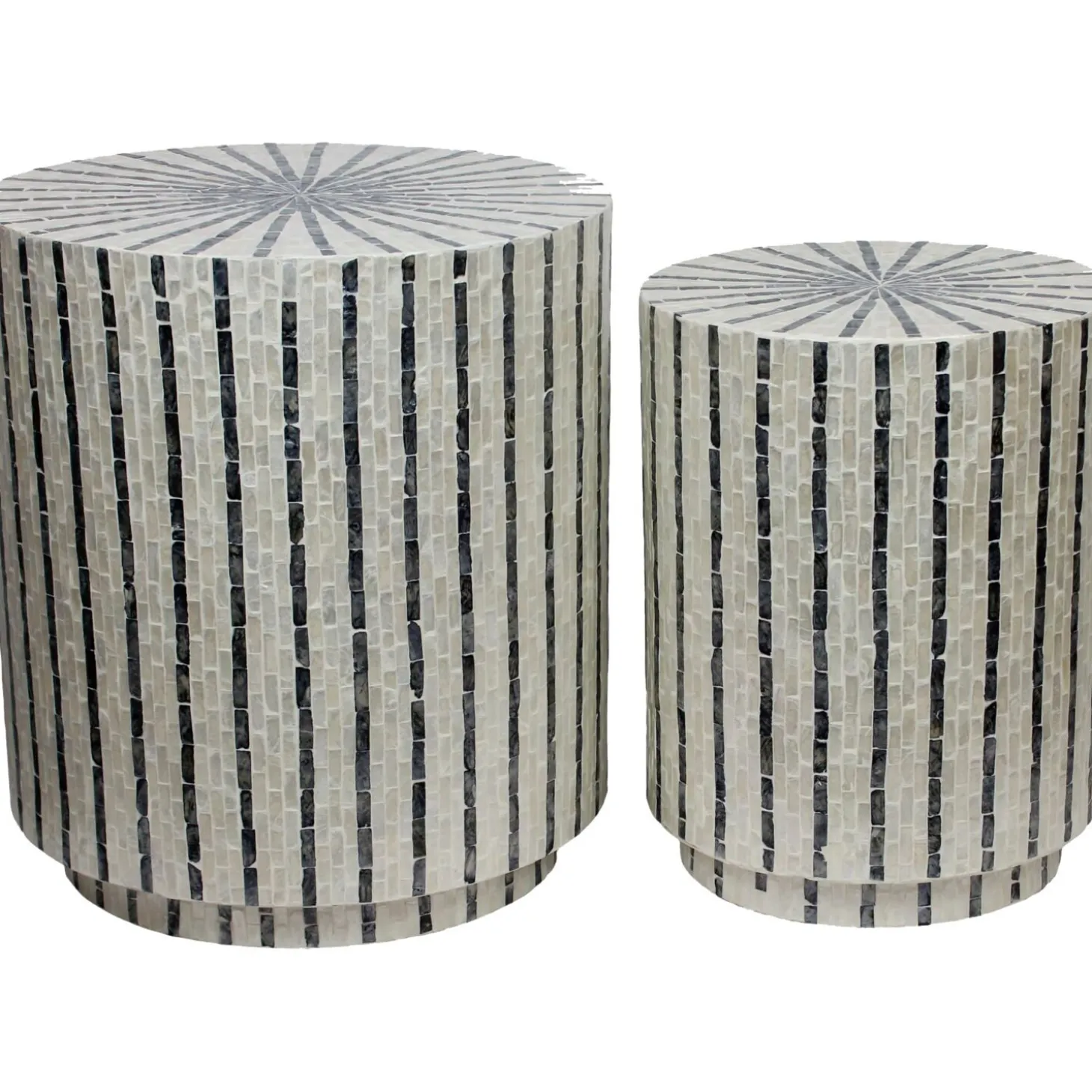 Geef je interieur een kleurrijk en speels accent met deze set van 2 bijzettafels. De kleine tegelvormpjes in groen, grijs, blauw en zwart maken de tafels uniek en stijlvol, terwijl het compacte formaat ze veelzijdig inzetbaar maakt in elke ruimte. Perfect als extra tafel of decoratief element in je woonkamer.