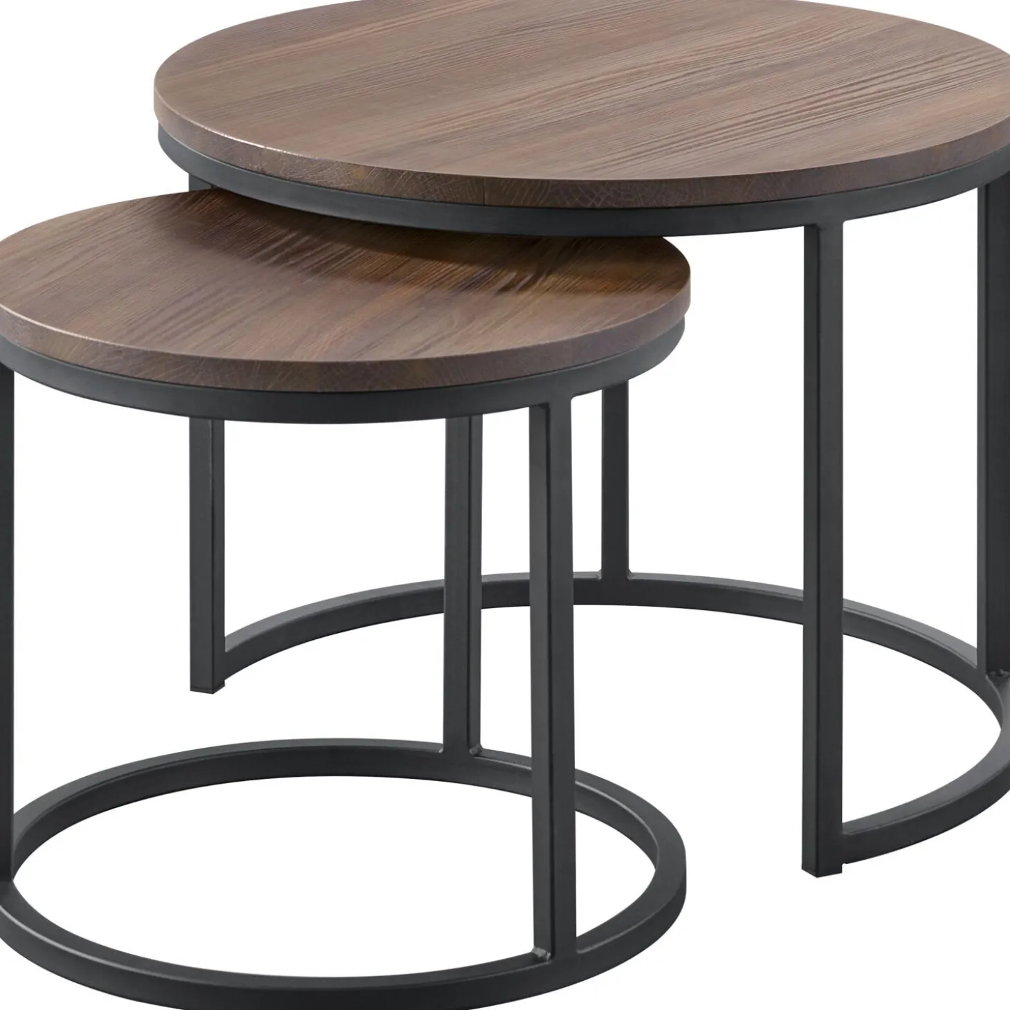 De combinatie van het donkere ronde bovenblad en het zwart metalen onderstel geven deze bijzettafel set Budrio een stoer en modern karakter. De set bestaat uit een tafeltje van 36×45 cm en een tafeltje van 46×60 cm. Je kunt ze bij elkaar, of los van elkaar in je interieur plaatsen.