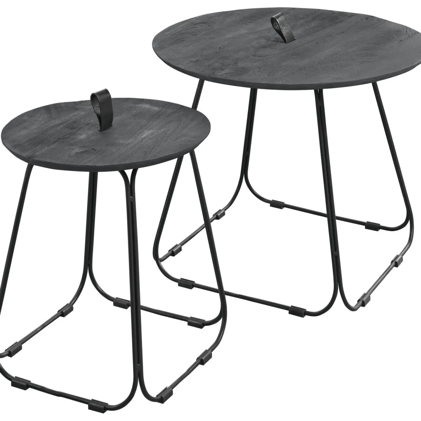 Geef je interieur een stoere touch met de Monroy bijzettafelset in zwart brushed mango. Dankzij de handige lus verplaats je ze moeiteloos. Stijl en gemak in één.