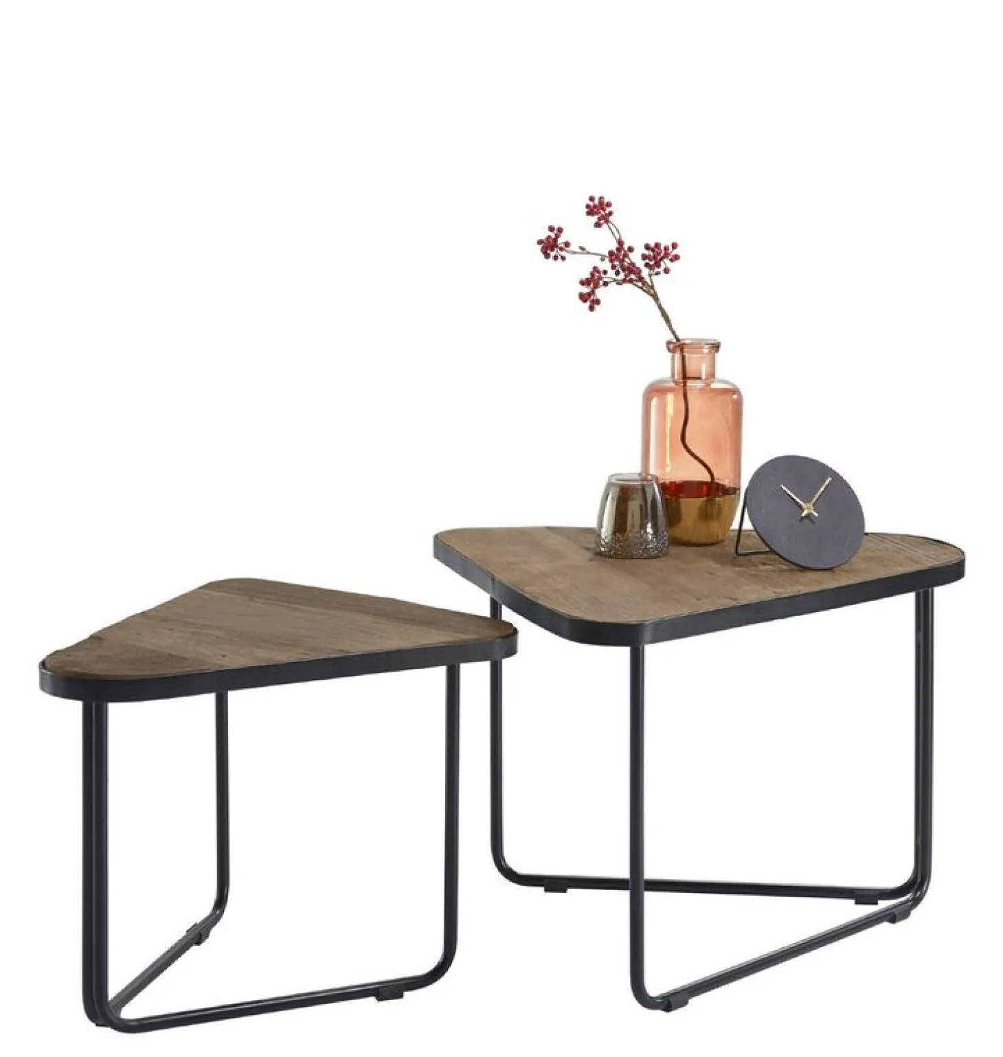 | Uitvoering | Uitgevoerd met blad in burned mangohout in de kleur natural en zwart metalen onderstel. |