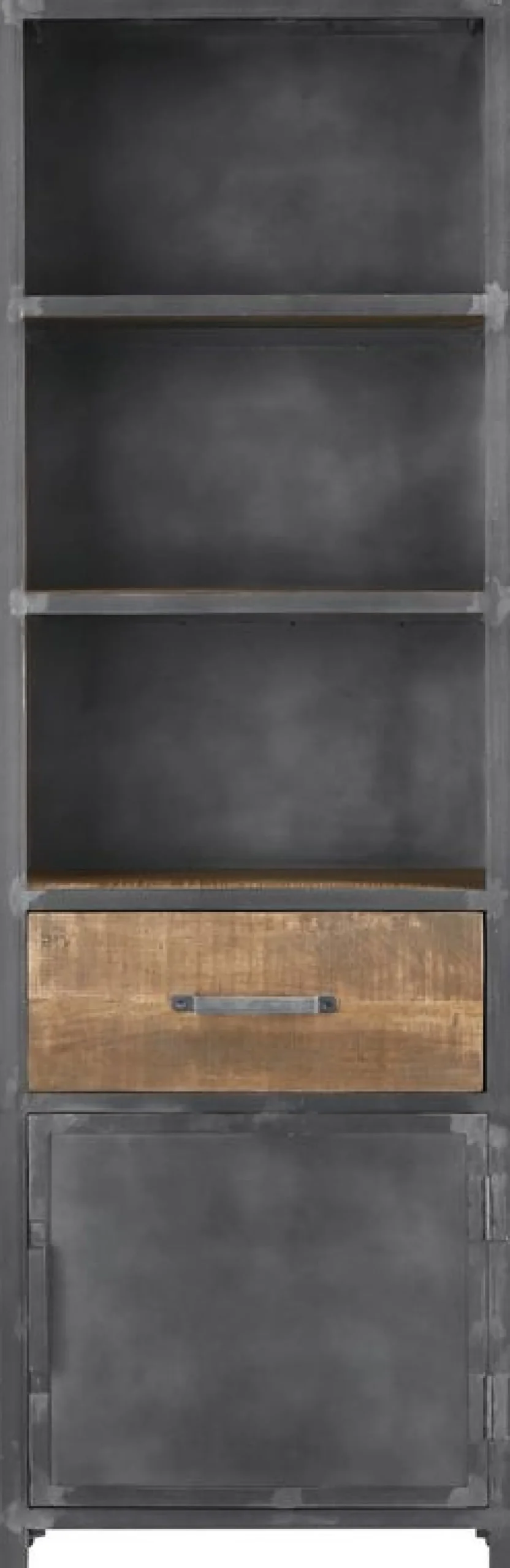 De zichtbare geslepen lasnaden en ruwe afwerking geven deze boekenkast een stoere industriële look. Reinig na het uitpakken/monteren de metalen structuur de eerste maal grondig met een lichtvochtige doek (handwarm water en een beetje zeep).