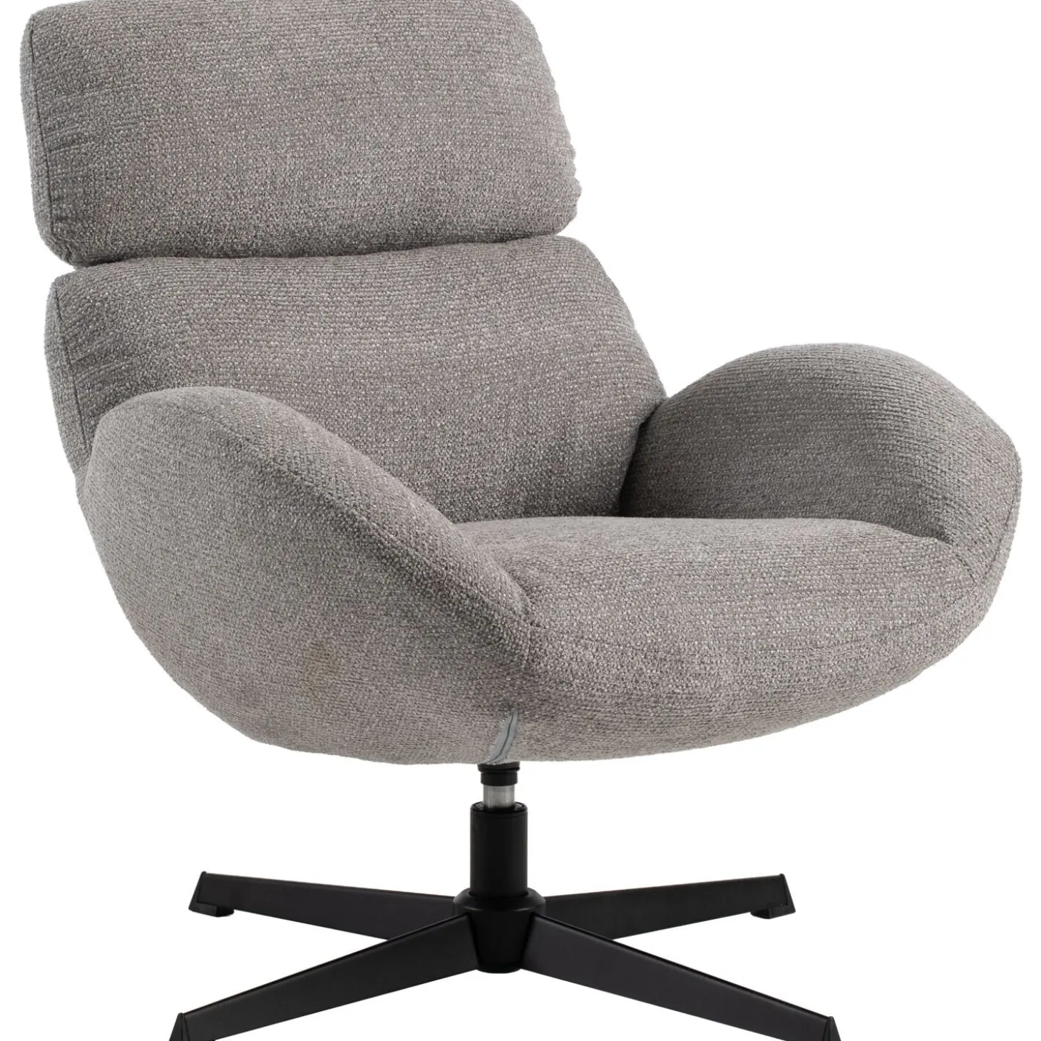 In draaifauteuil Bolands kun je heerlijk relaxen! De kuipzit in combinatie met de heerlijk zachte stof roept toch om jouw naam? De fauteuil is bekleed met een grijze gemêleerde weefstof. Deze licht meerkleurige kwaliteit heeft een wat grovere structuur, maar wel een erg zachte touch.