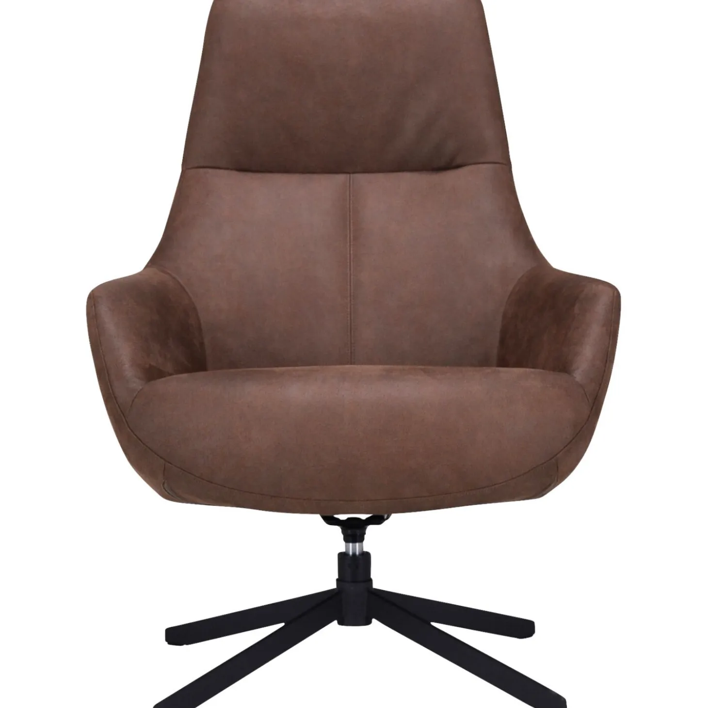 | Uitvoering | Uitgevoerd in microleder bull 15-brown met polyetherschuim in de zitting, polyetherschuim in de rug en een zwart metalen 4-teens draaipoot. |