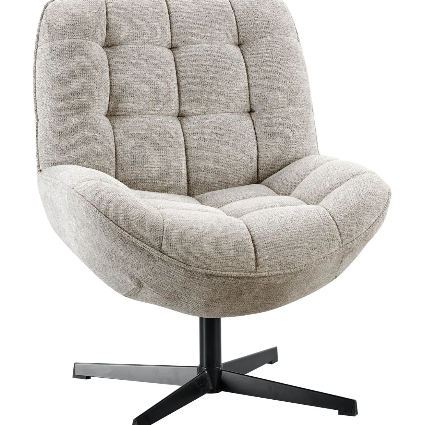 In draaifauteuil Morley kun je heerlijk relaxen! De kuipzit in combinatie met de heerlijk zachte stof roept toch om jouw naam? De fauteuil is bekleed met een lichtgrijze gemêleerde weefstof. Deze licht meerkleurige kwaliteit heeft een wat grovere structuur, maar wel een erg zachte touch. De fauteuil is 360 graden draaibaar, en bevat een mooi sierstiksel op zowel de rugleuning als de zitting, wat de fauteuil een echte eyecatcher maakt.