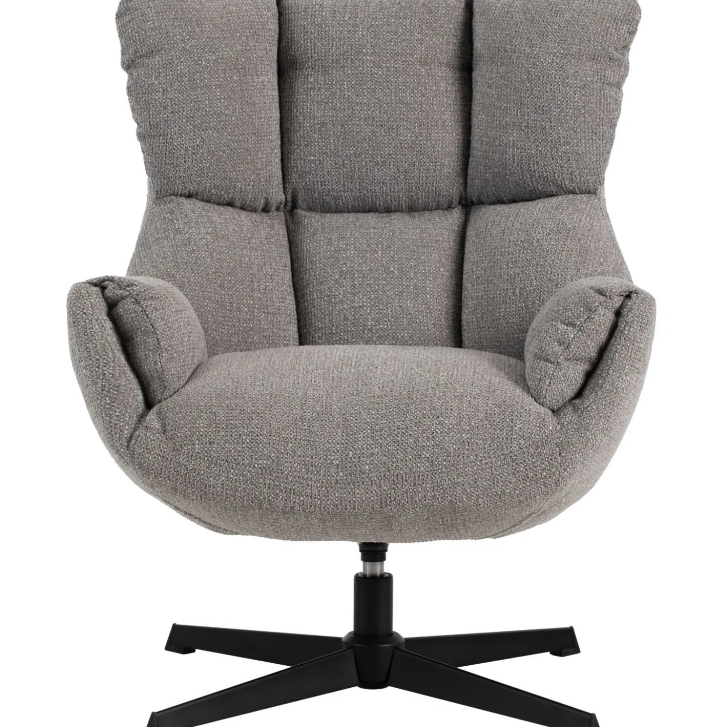 In draaifauteuil Ordini kun je heerlijk relaxen! De kuipzit in combinatie met de heerlijk zachte stof roept toch om jouw naam? De fauteuil is bekleed met een grijze gemêleerde weefstof. Deze licht meerkleurige kwaliteit heeft een wat grovere structuur, maar wel een erg zachte touch. Het sierstiksel in de rug maakt deze fauteuil een echte eyecatcher.