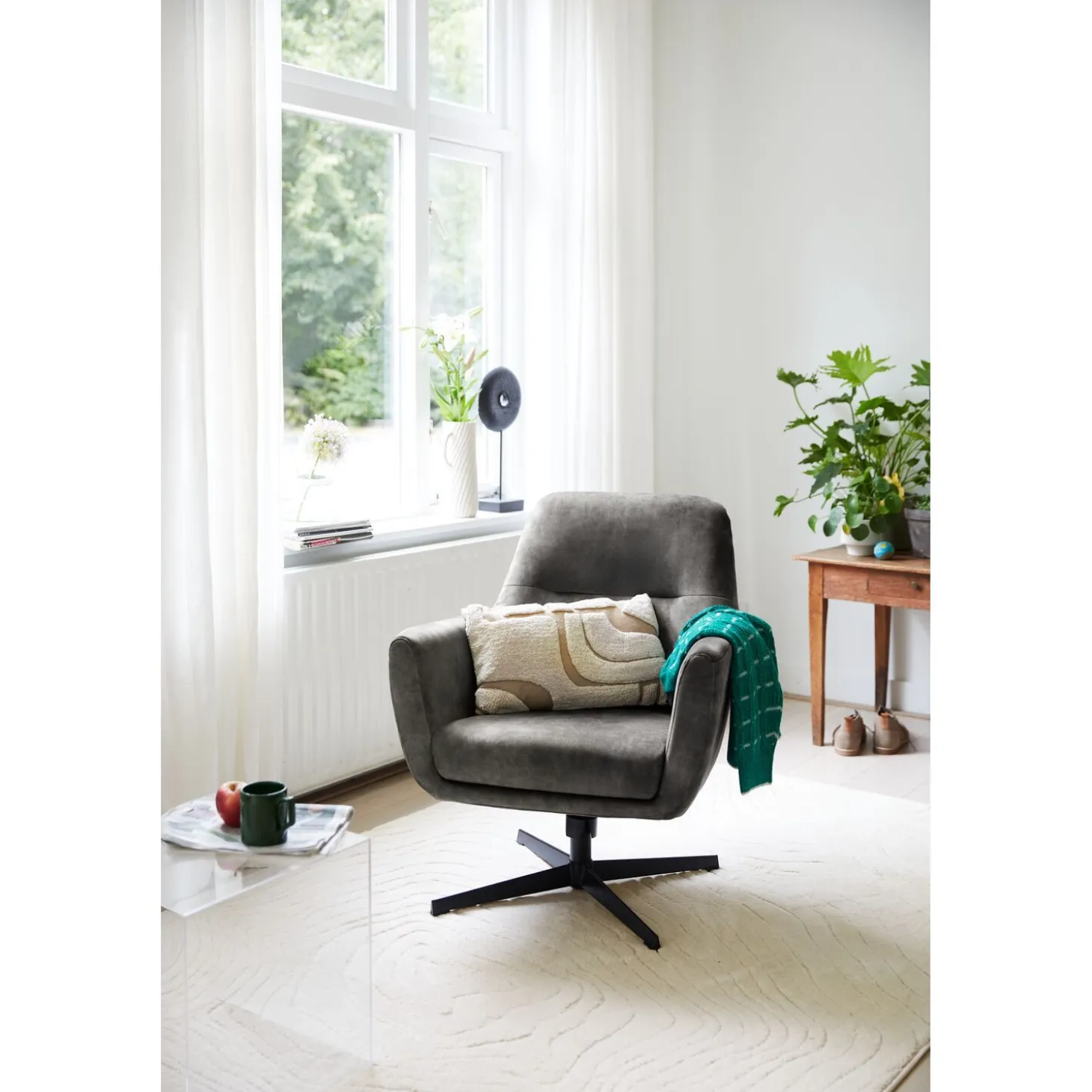 Velvet draaifauteuil Tarkio in antraciet