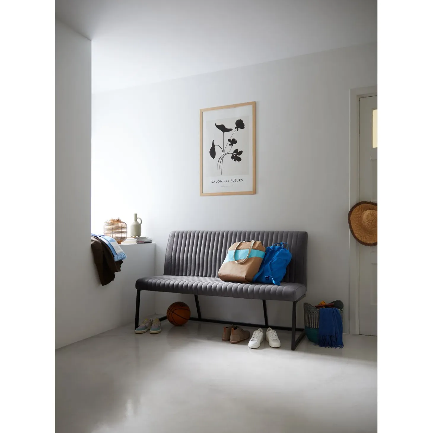 | Uitvoering | Uitgevoerd in stof rhino in de kleur grey (PK970-11) met polyetherschuim in de zitting en de rug en metalen mat zwart gepoedercoated frame. |