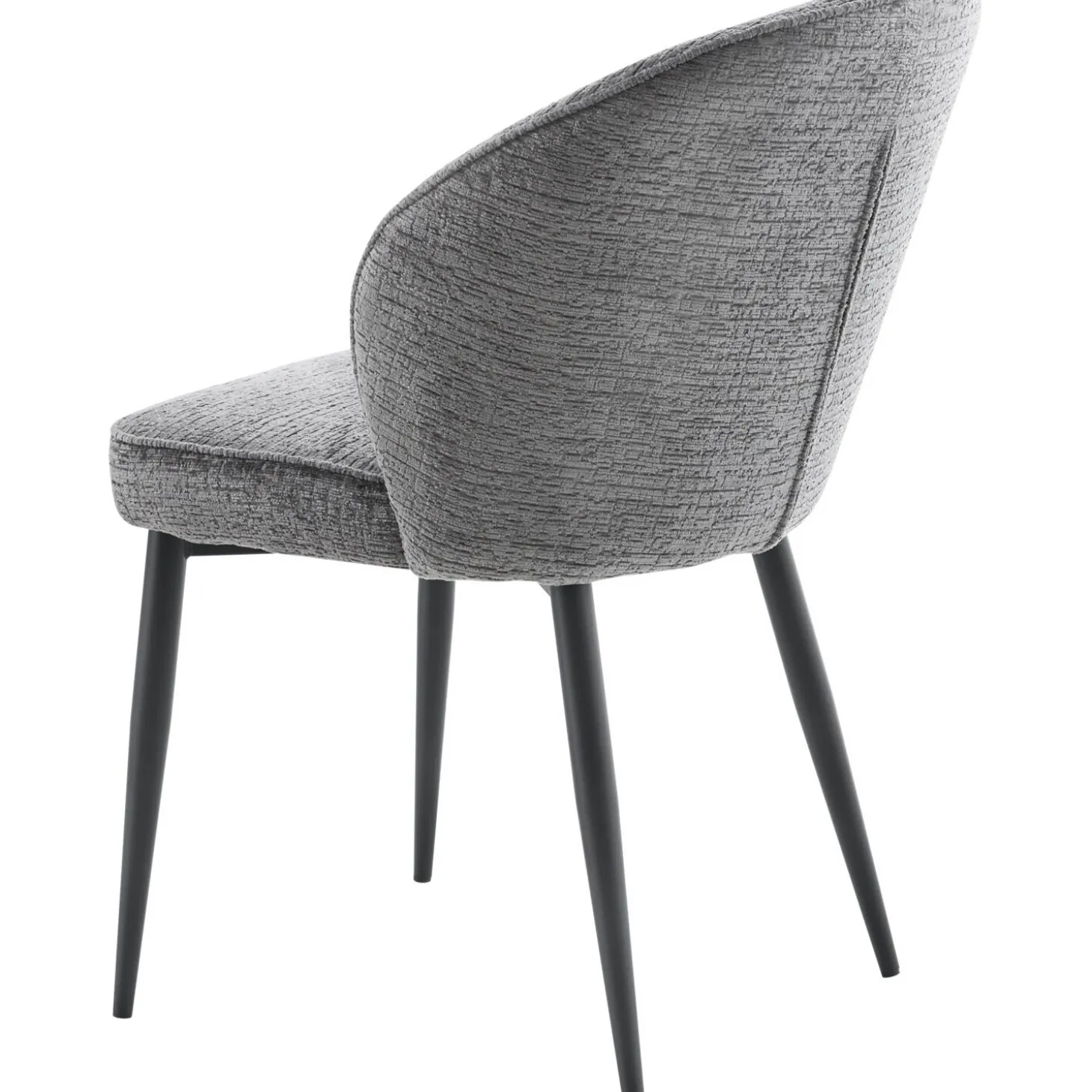 Eetkamerstoel Kula heeft een chique uitstraling door de glanzende stof waarin hij uitgevoerd is. Deze chenille stof Fusion voelt heerlijk zacht aan en heeft een licht 3d-effect. De stoel is uitgevoerd in de kleur antraciet, maar is ook verkrijgbaar in lichtgrijs en lichtbruin. Kula is afgewerkt met een mooie bies voor een unieke look.