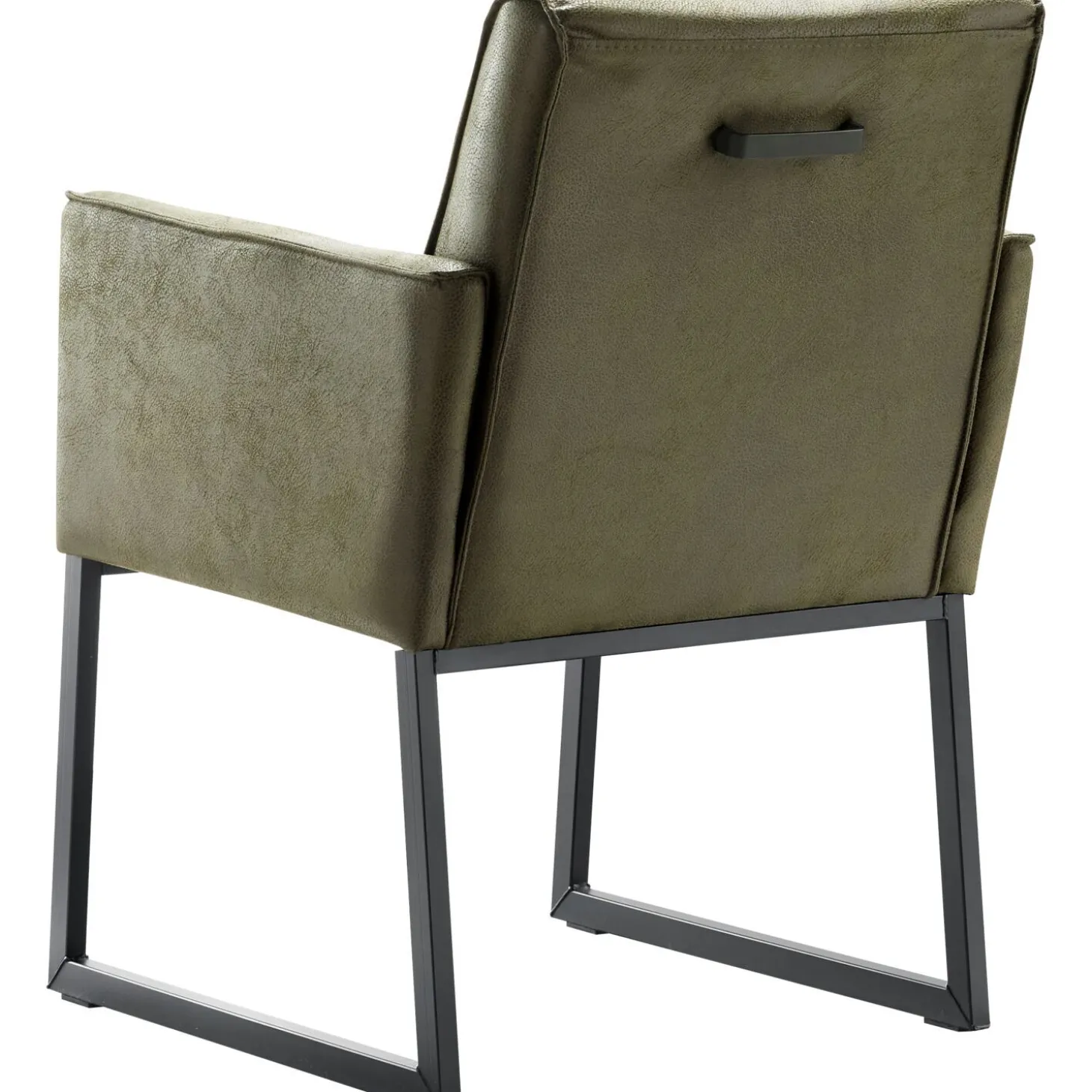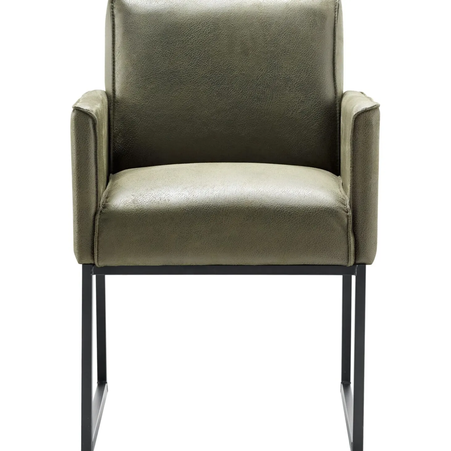 De fraaie vlindernaad in combinatie met microleder dakota in de kleur turtle is wat deze uitvoering van stoel Thurso een comfortabele uitstraling geeft. Microleder dakota is een samengestelde bekleding van leder en stof met een mooie en luxe uitstraling en makkelijk in onderhoud. Het zwart metalen frame geeft de stoel een modern uiterlijk. De zitting is comfortabel dik en voorzien van nosagvering, wat een licht verend zitcomfort geeft en lang zijn vorm behoud. Deze luxe armstoel Thurso is zeer geschikt voor uren natafelen.