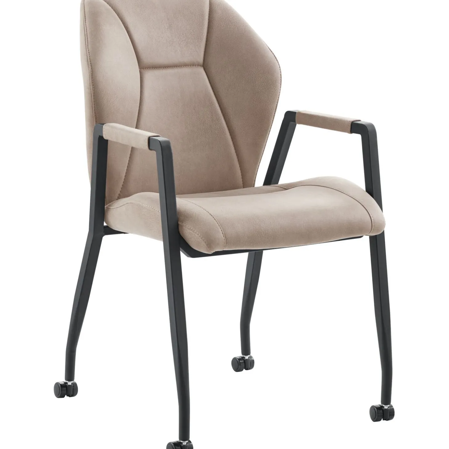 | Uitvoering | Uitgevoerd in stof zorro clay met polyetherschuim in de zitting en de rug en zwart metalen poten voorzien van wieltjes. |