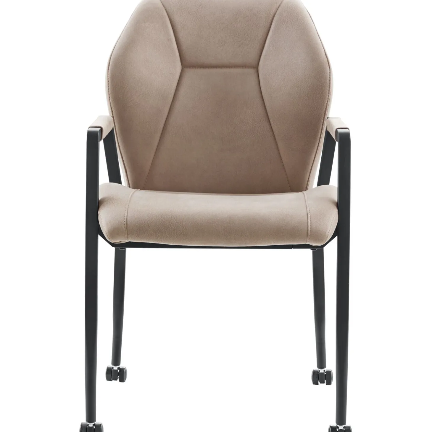 Armstoel Morada is uitgevoerd in een beige microvezelstof met zichtbare nerven. Microvezel is een zachte, onderhoudsvriendelijke stof. De opvallende zeshoekige rugleuning en de sierstiksels in de zitting en rug geven de stoel een unieke uitstraling. De armleuningen zijn voorzien van een dekje in dezelfde stof.