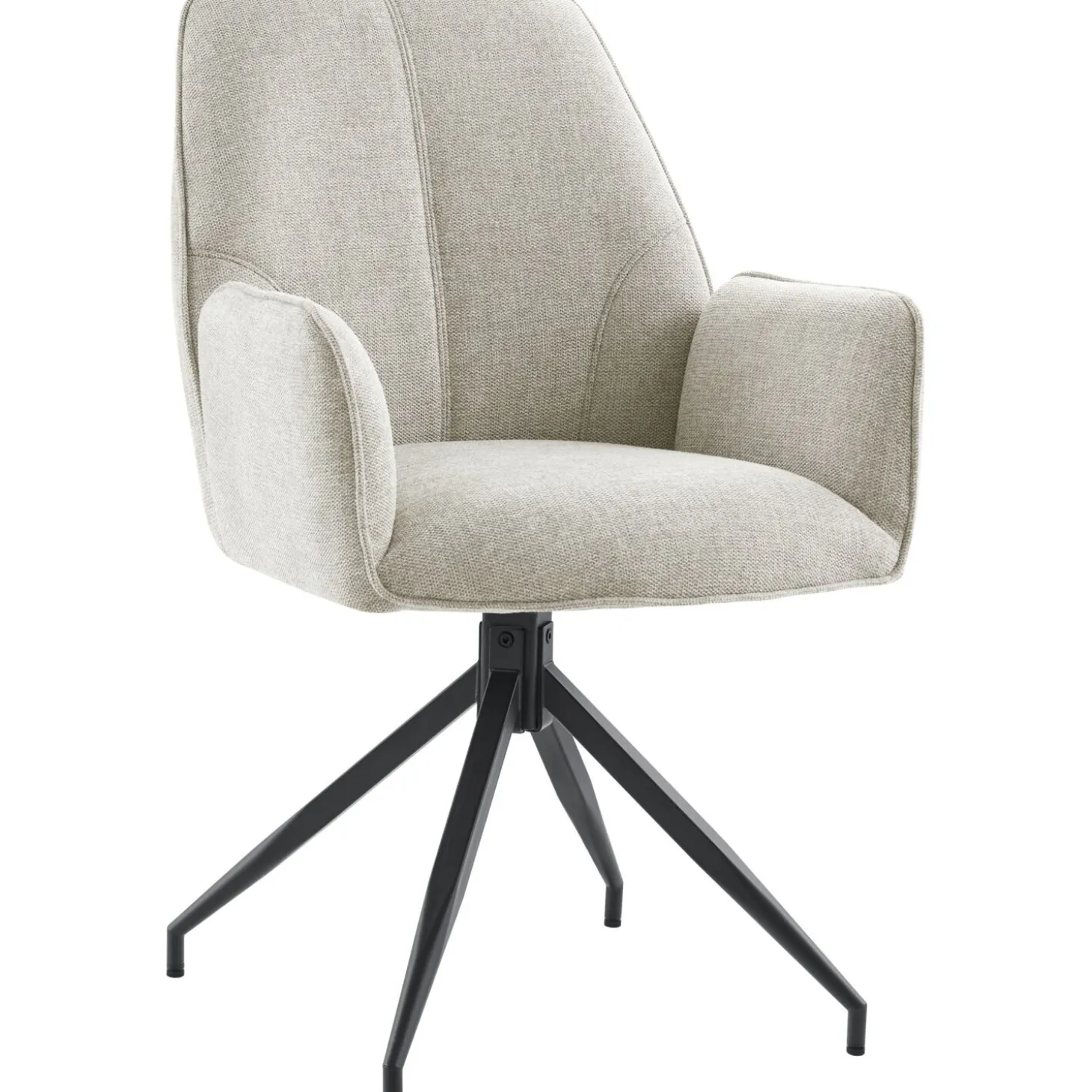 | Uitvoering | Uitgevoerd in stof belfast 41-licht grijs met polyetherschuim in de zitting en de rug en een mat zwart metalen poot met terugdraaimechanisme. |