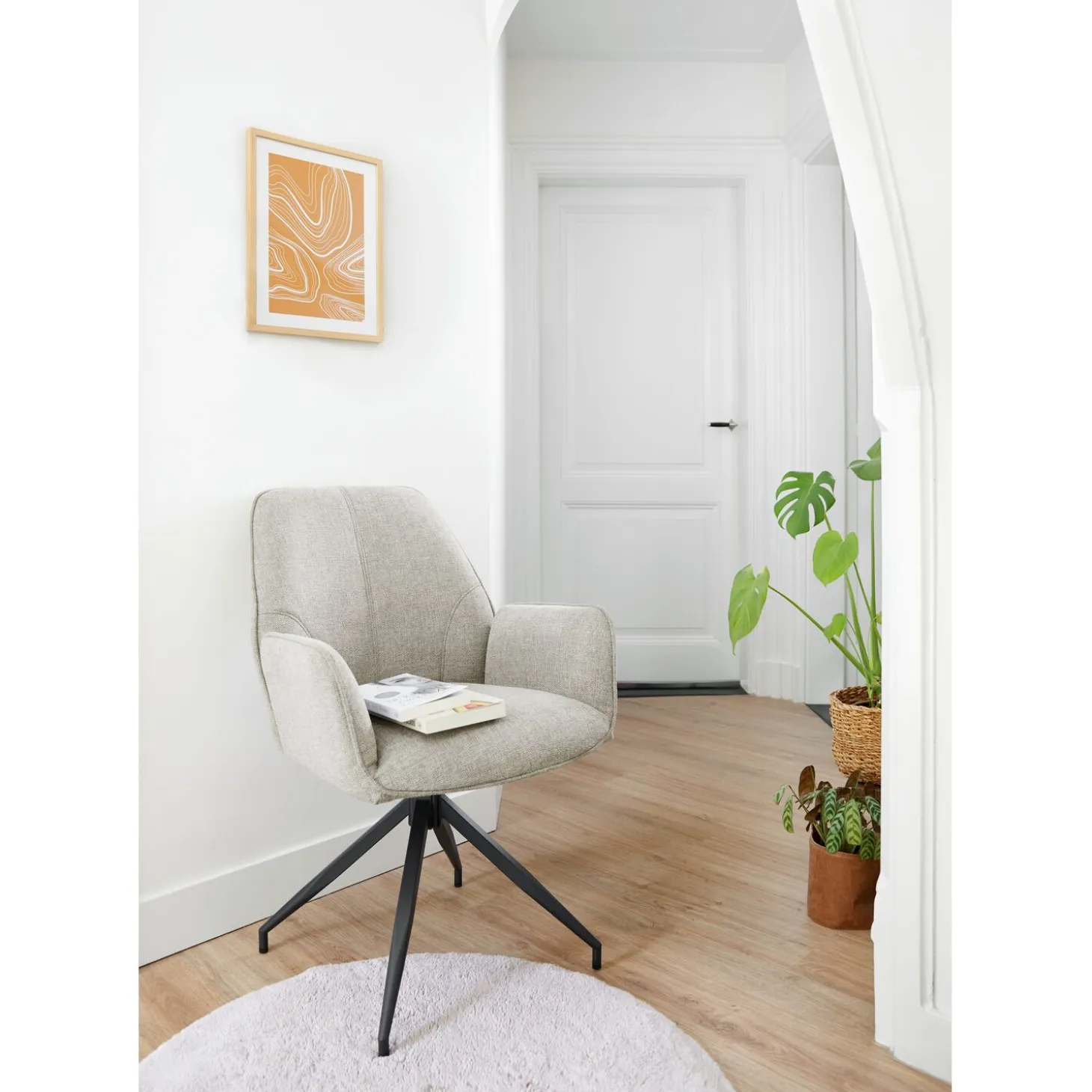 Maar deze stoel is niet alleen mooi om te zien. Hij is ook ontworpen om je het ultieme zitcomfort te bieden. De mat zwarte metalen poot van deze stoel is voorzien van een 180 graden terugdraaifunctie. Dit betekent dat je gemakkelijk kunt draaien en jezelf kunt verplaatsen zonder je stoel te hoeven verschuiven. Dit is tevens ideaal als je wat minder ruimte bij je eettafel hebt. De poot en het draaimechanisme moeten nog worden gemonteerd. Met de bijgesloten montagehandleiding is dit zo gebeurd.