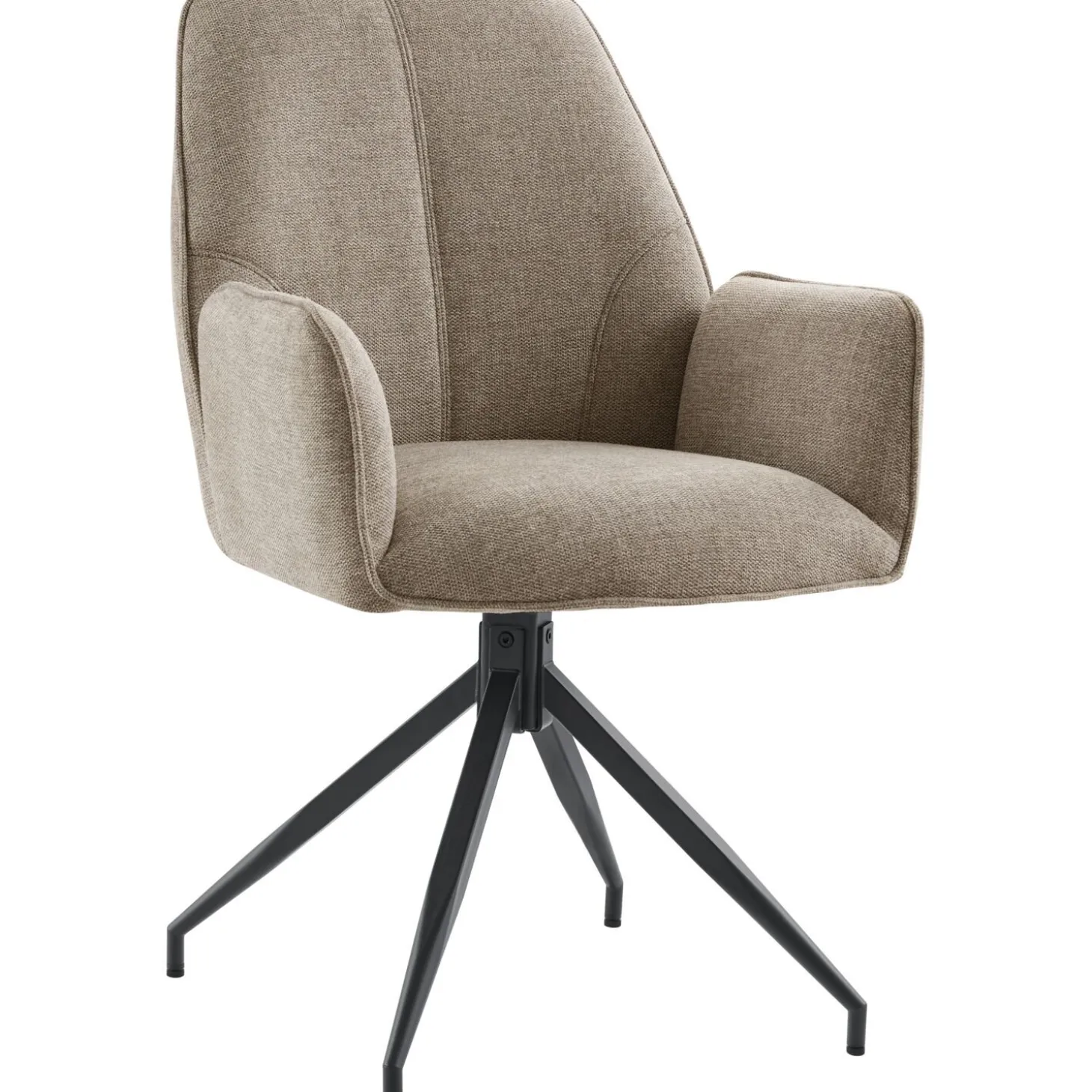 | Uitvoering | Uitgevoerd in stof belfast 04-taupe met polyetherschuim in de zitting en de rug en een mat zwart metalen poot met terugdraaimechanisme. |