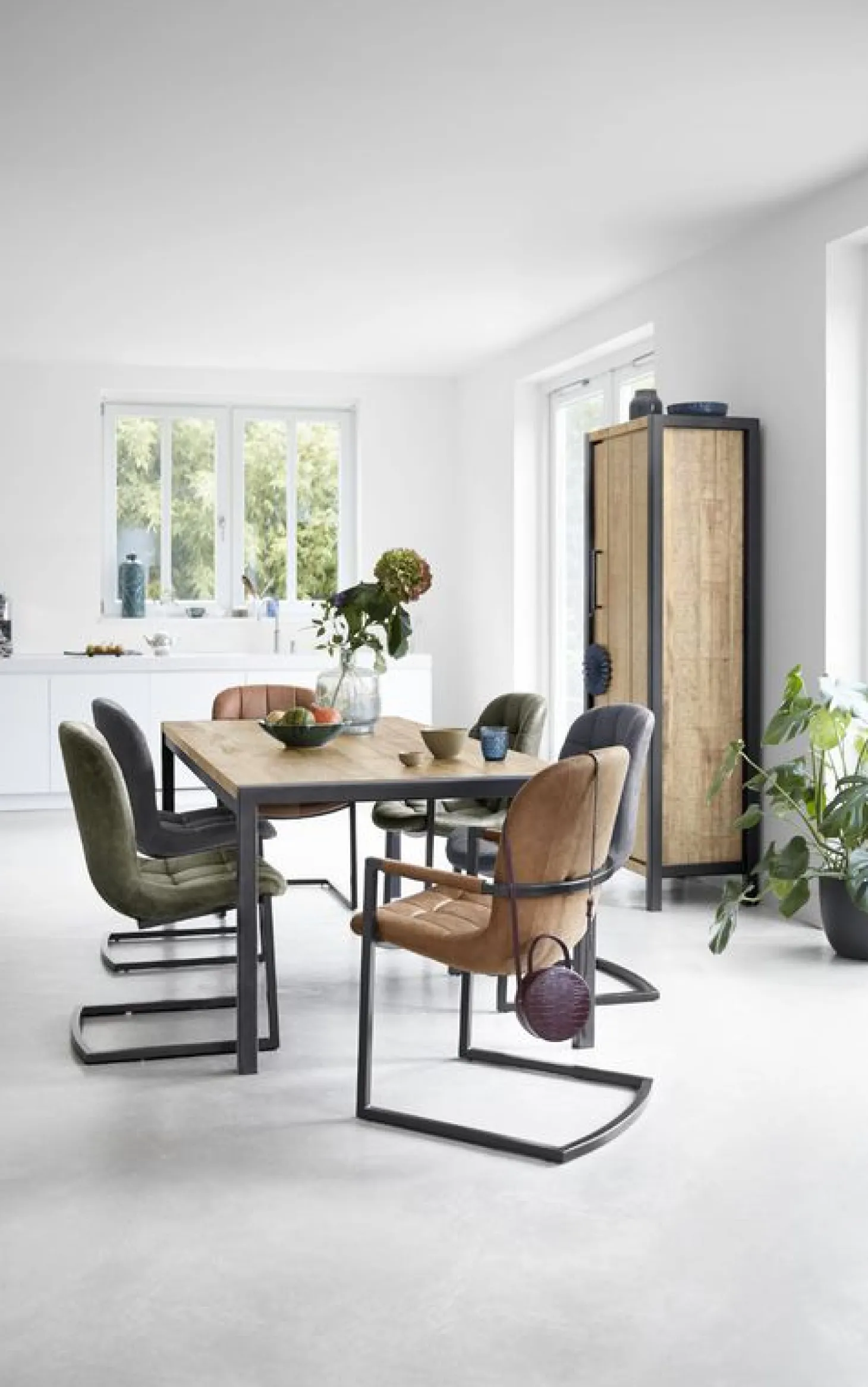 | Uitvoering | Uitgevoerd in de kleur mango met zwart metalen frame. |