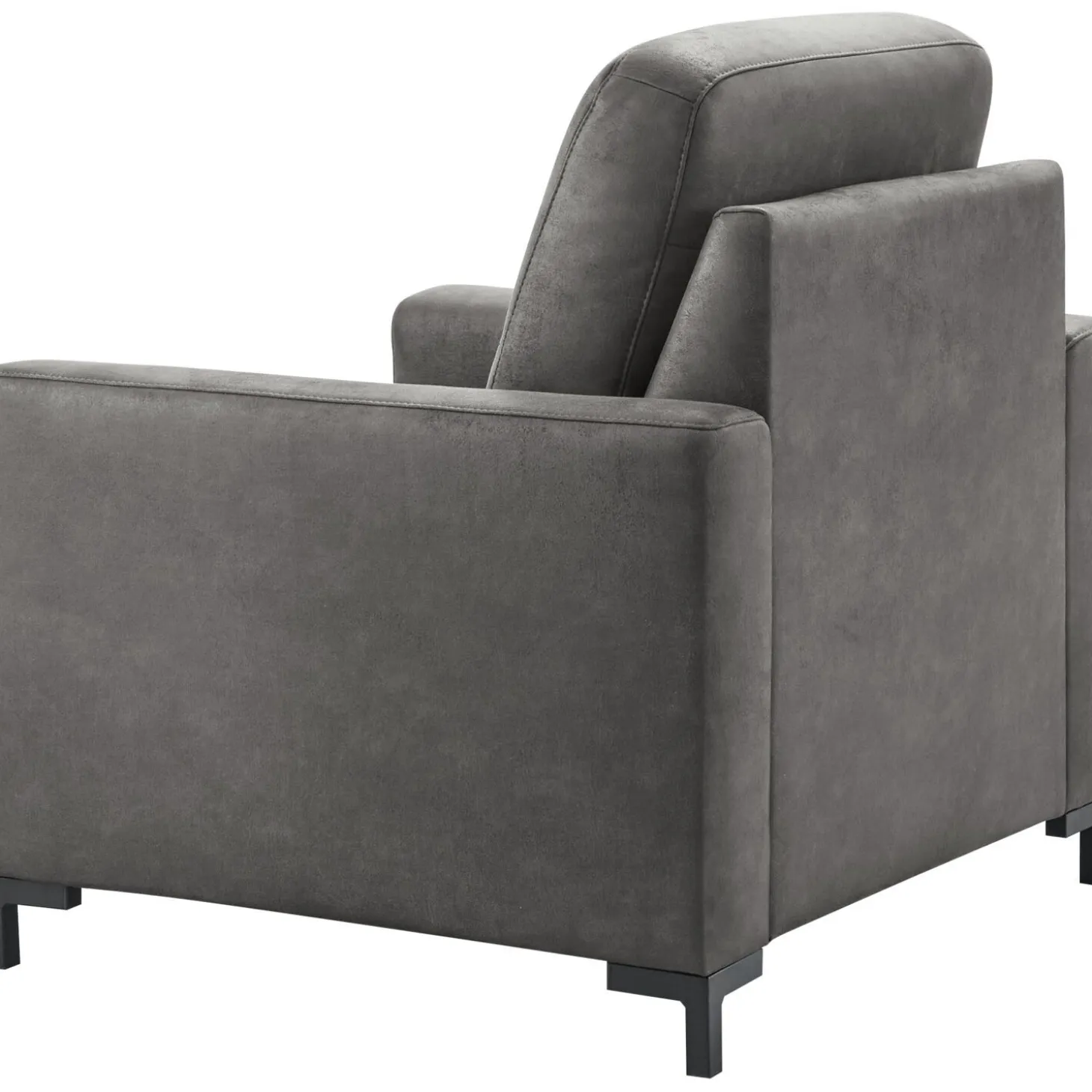 | Uitvoering | Uitgevoerd in microleder bull 67-antraciet met arm B, hoge rug, bonellvering met een toplaag van HR-koudschuim in de zitting, polyetherschuim in de rug en zwarte metalen poten, type MF5 (hoogte 9 cm). |