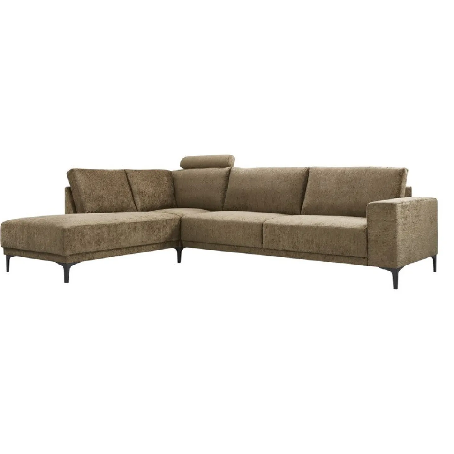 Moderne hoekbank Clanton in bruine chenille stof met HR-schuim