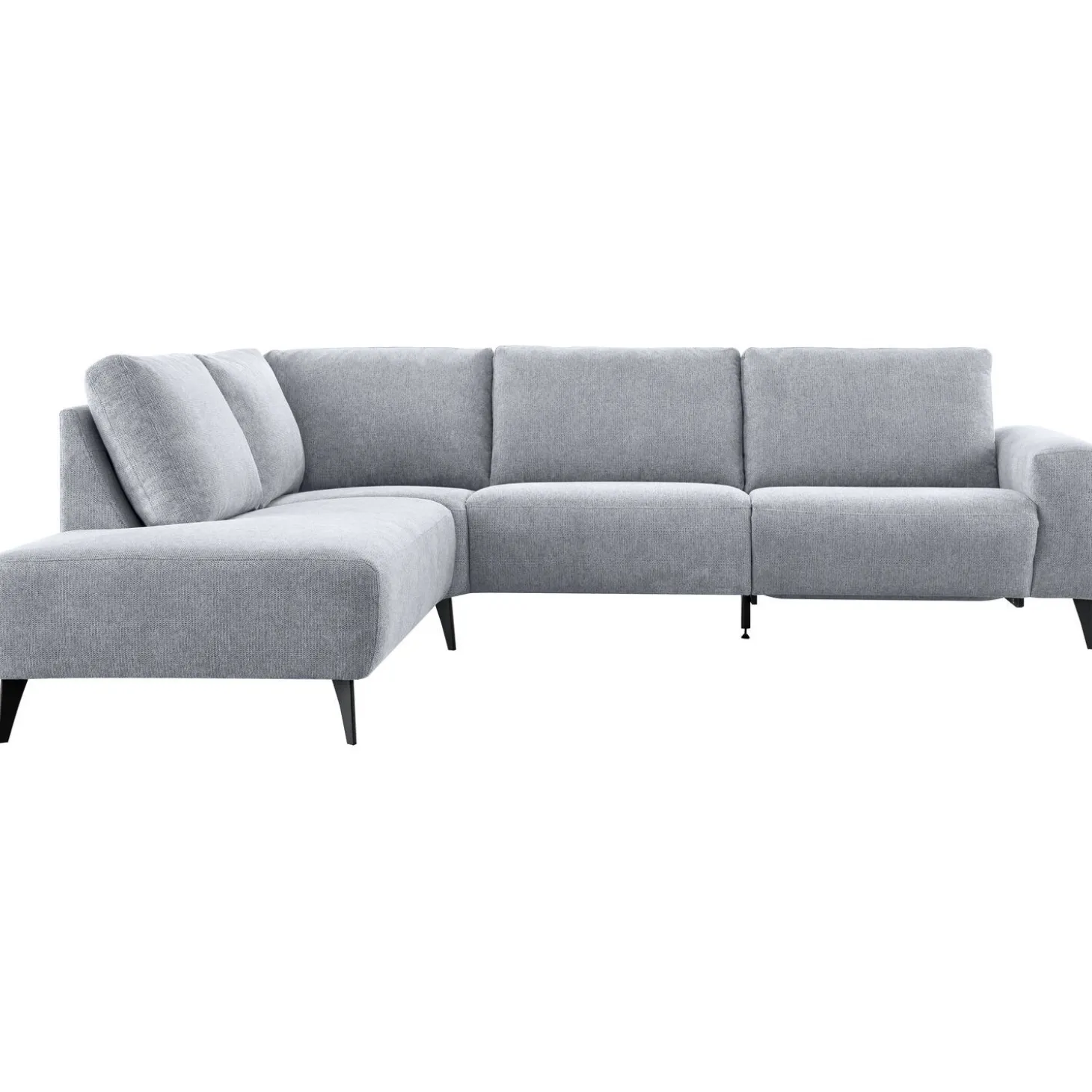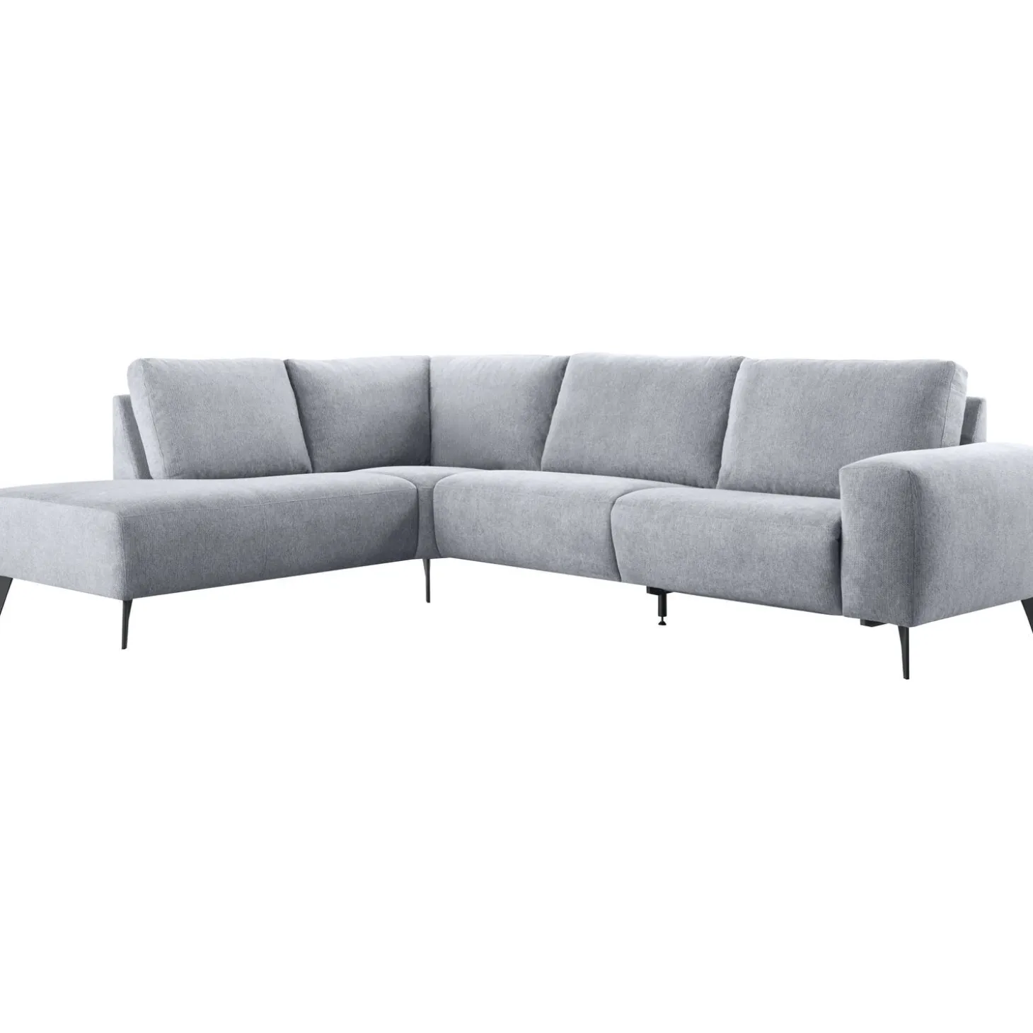 | Uitvoering | Hoek met eiland li + 1,5 zits (80) zonder armen + 1,5 zits (80) ar, uitgevoerd in stof mito 87-slate, met arm B, zonder voorregel, hoge rug, polyetherschuim met een bovenlaag van HR-koudschuim in de zitting, mixvulling van HR-koudschuim, polyetherschuim- en siliconenvlokken in de rug en zwarte metalen poten (201K). |