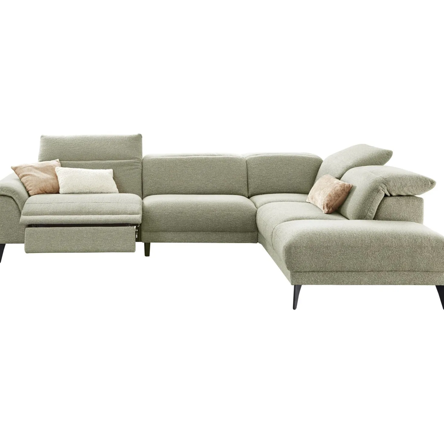 | Uitvoering | 1,5 zits (90) arm links met elektrische relaxfunctie en verstelbare hoofdsteun + 1,5 zits (90) zonder armen + hoek met eiland rechts uitgevoerd in stof lodge 206-thyme met HR-koudschuim met een toplaag van polyetherschuim in de zitting, HR-koudschuim in de rug en zwarte metalen poten type 2O1K. |