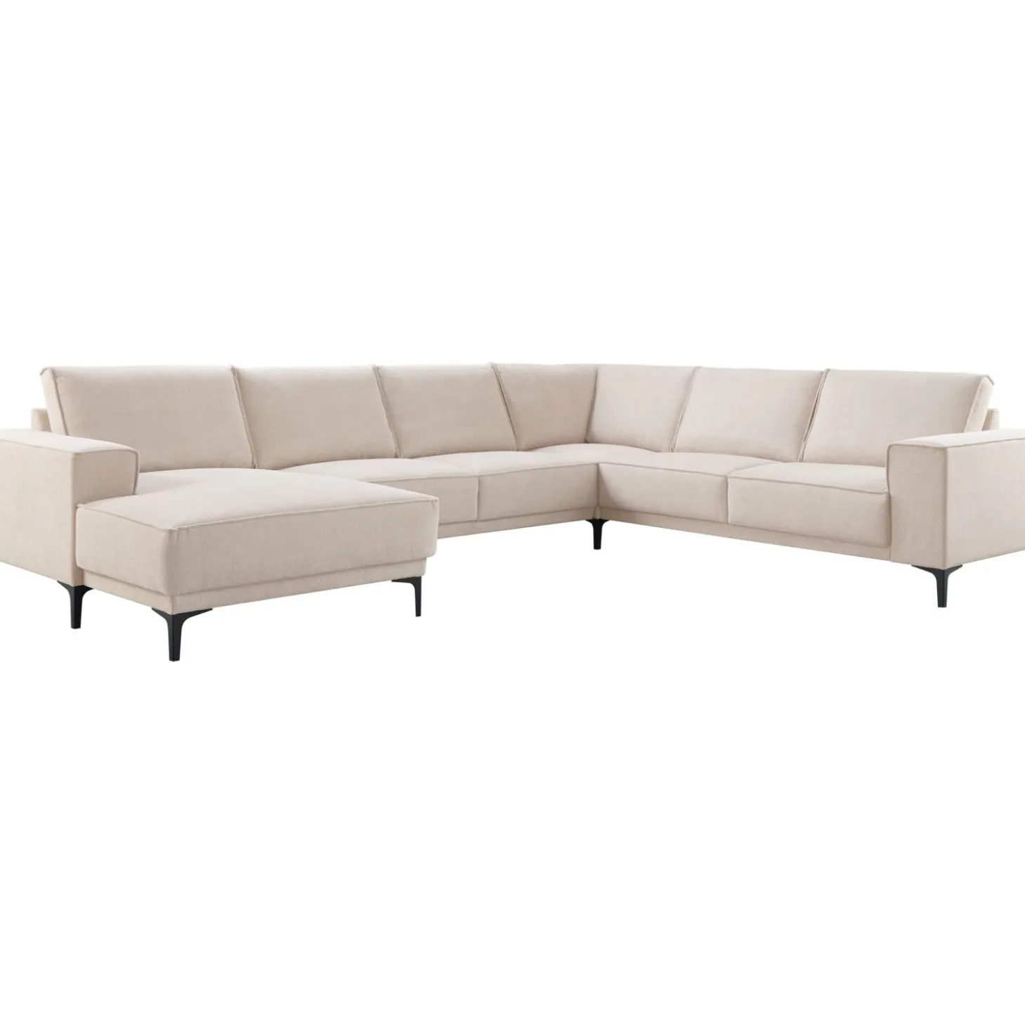 | Uitvoering | Longchair arm links + 2,5 zits zonder armen + hoek + 2,5 zits arm rechts in stof mito 01-natural met brede armleuning, polyetherschuim in de zitting, mix van polyetherschuim- en siliconenvlokken in de rug en zwarte T-poten type 12234 H-150. |