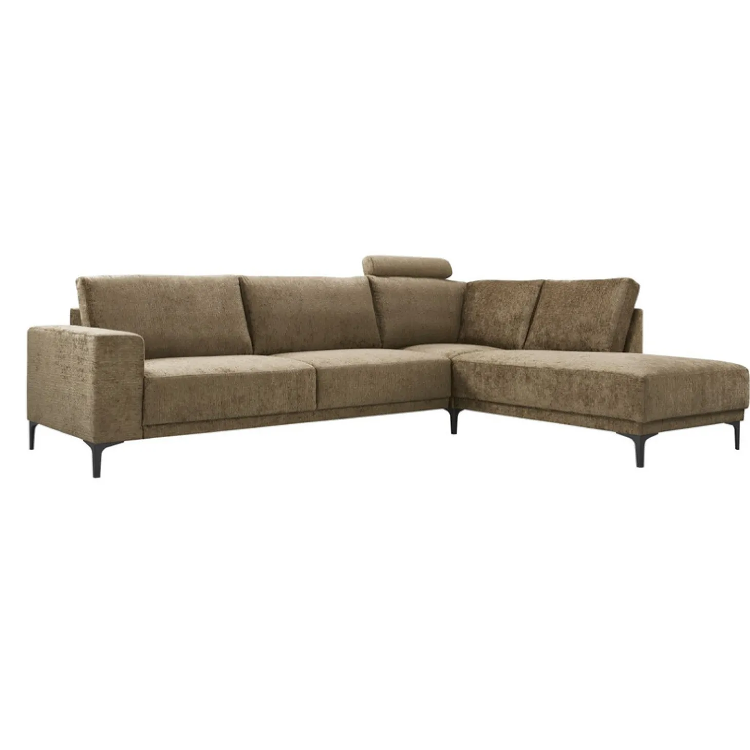 Moderne hoekbank Clanton in bruine chenille stof met HR-schuim