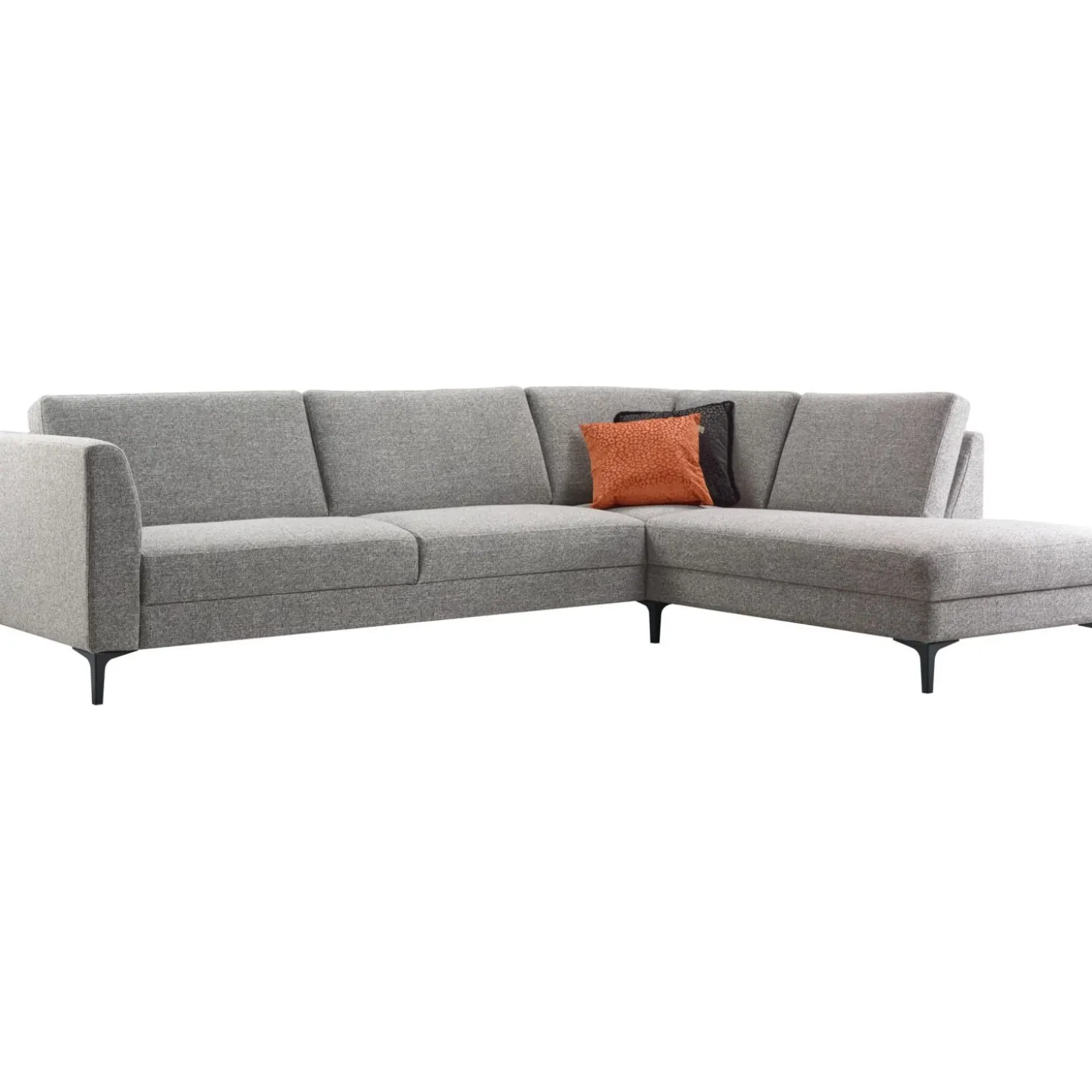 | Uitvoering | 3 zits arm links + hoek met eiland rechts uitgevoerd in stof oasis 65-grey met polyetherschuim in de zitting, HR-koudschuim in de rug en zwarte metalen T-poot type 12234 H-150. |
