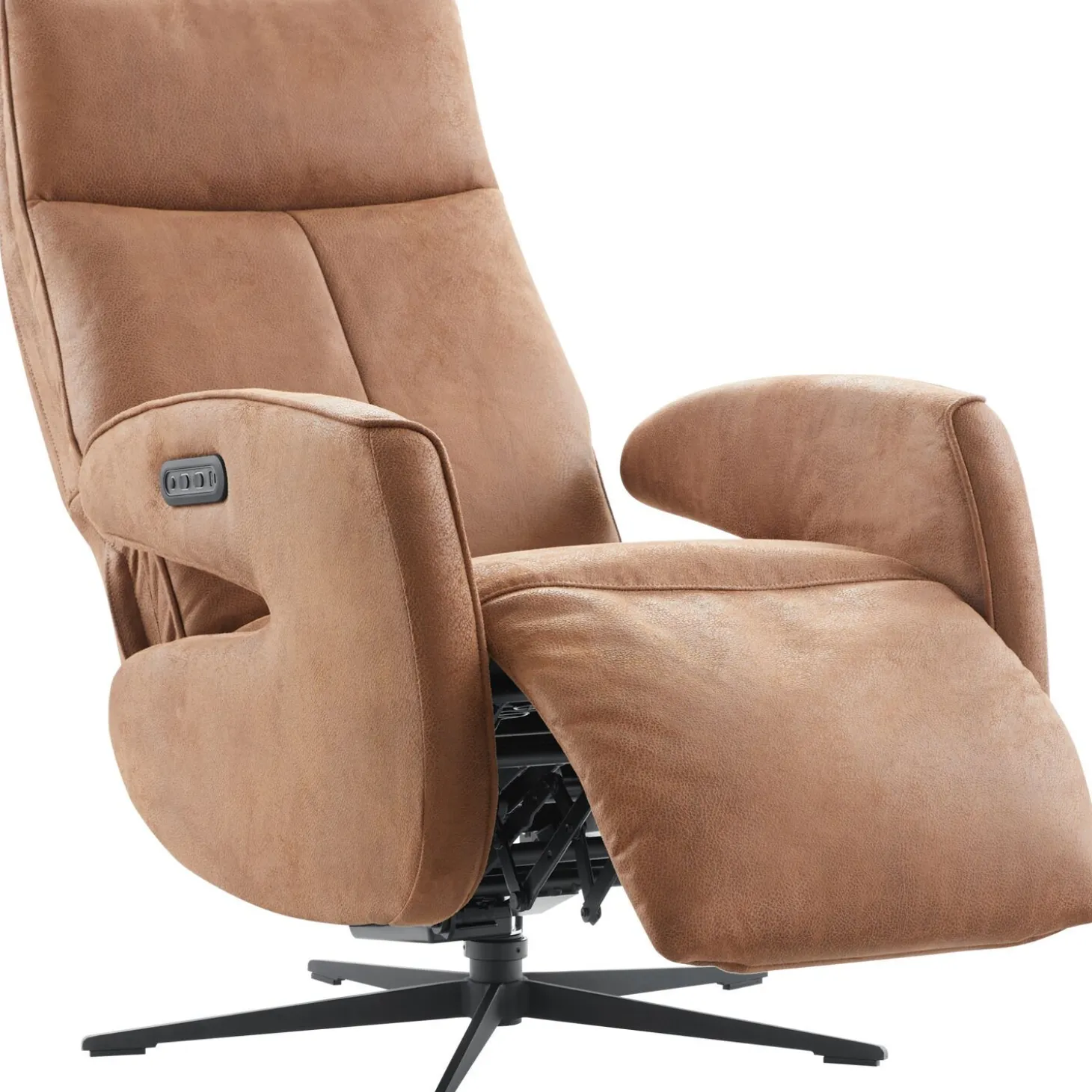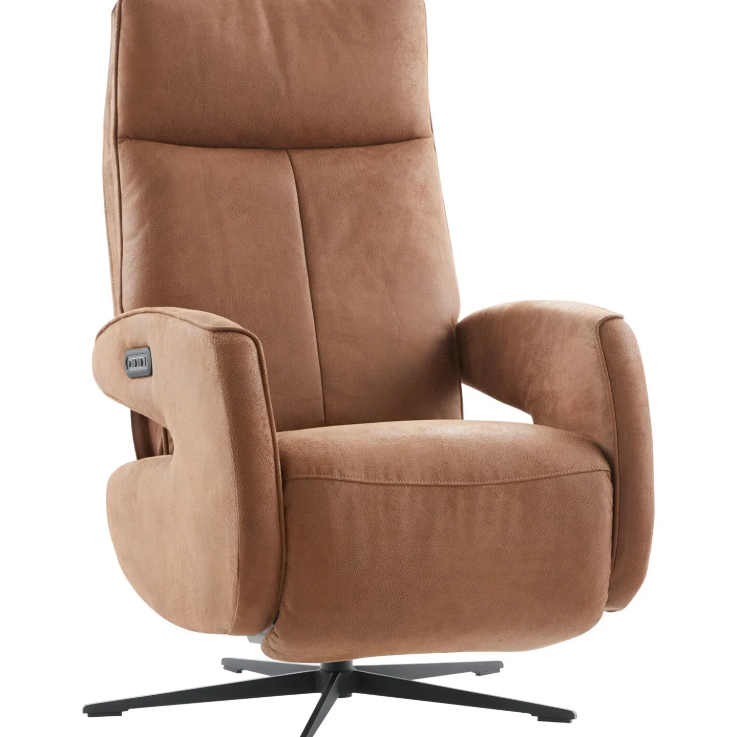 Ontspanning in stijl! Onze elektrisch verstelbare relaxfauteuil Niland is de perfecte aanvulling op jouw interieur. De fauteuil is bekleed met bruin microleder. Microleder is een samengesteld leder: de onderlaag bestaat uit ledervezels, de toplaag is een zachte microvezelstof met een zichtbare leernerf en licht gemêleerd dessin. In combinatie met de zwarte metalen 5-teensvoet geeft dit de relaxfauteuil een eigentijdse uitstraling.