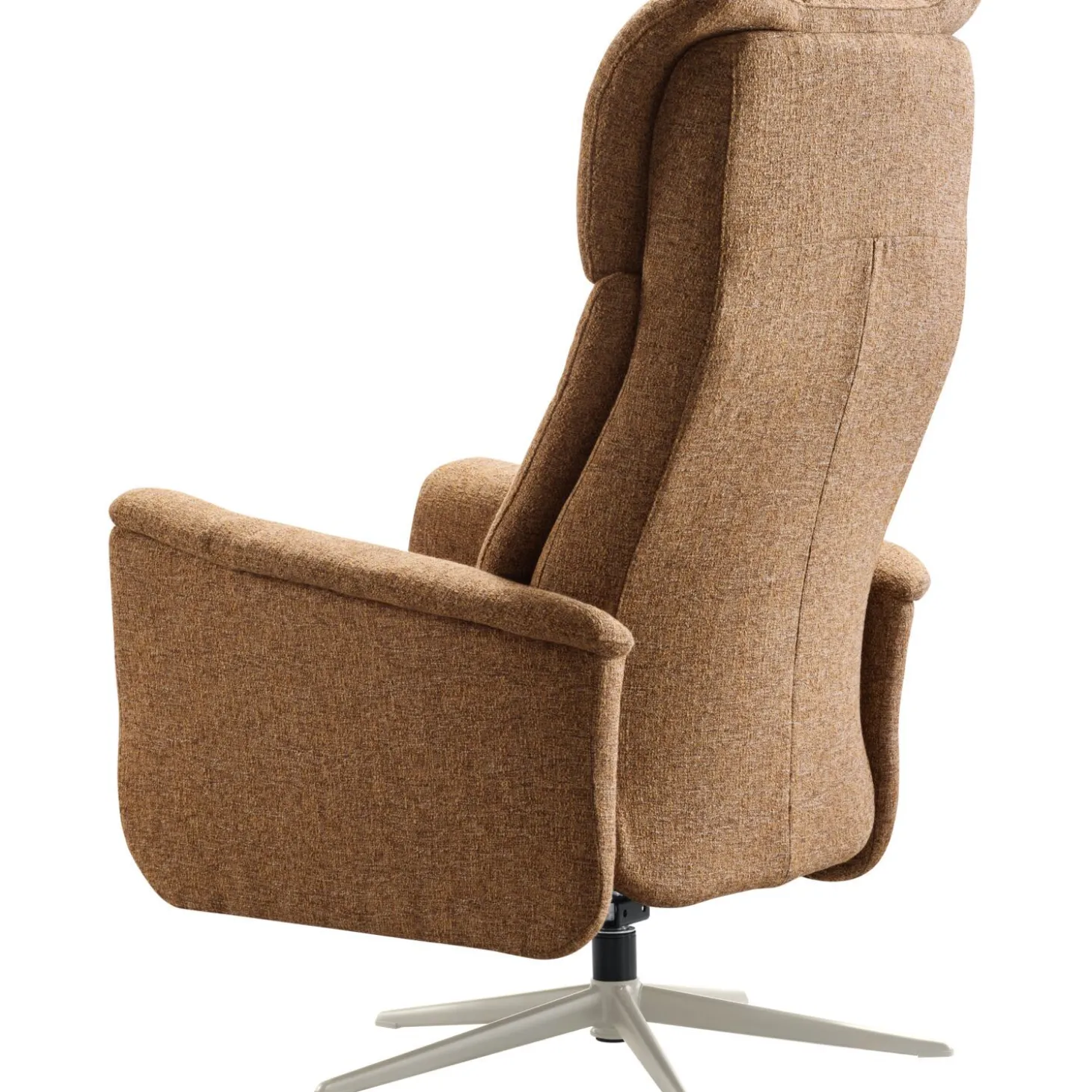 | Uitvoering | Large uitvoering, uitgevoerd in stof oasis 16-caramel met verstelbare rugleuning en voetensteun d.m.v. gasveer, verstelbare hoofdsteun, zwarte bedieningshendel, HR-koudschuim in de zitting, voorgevormd schuim met een toplaag van HR-koudschuim in de rug en een greige metalen 5-teensvoet (voet A, model PBV9). |