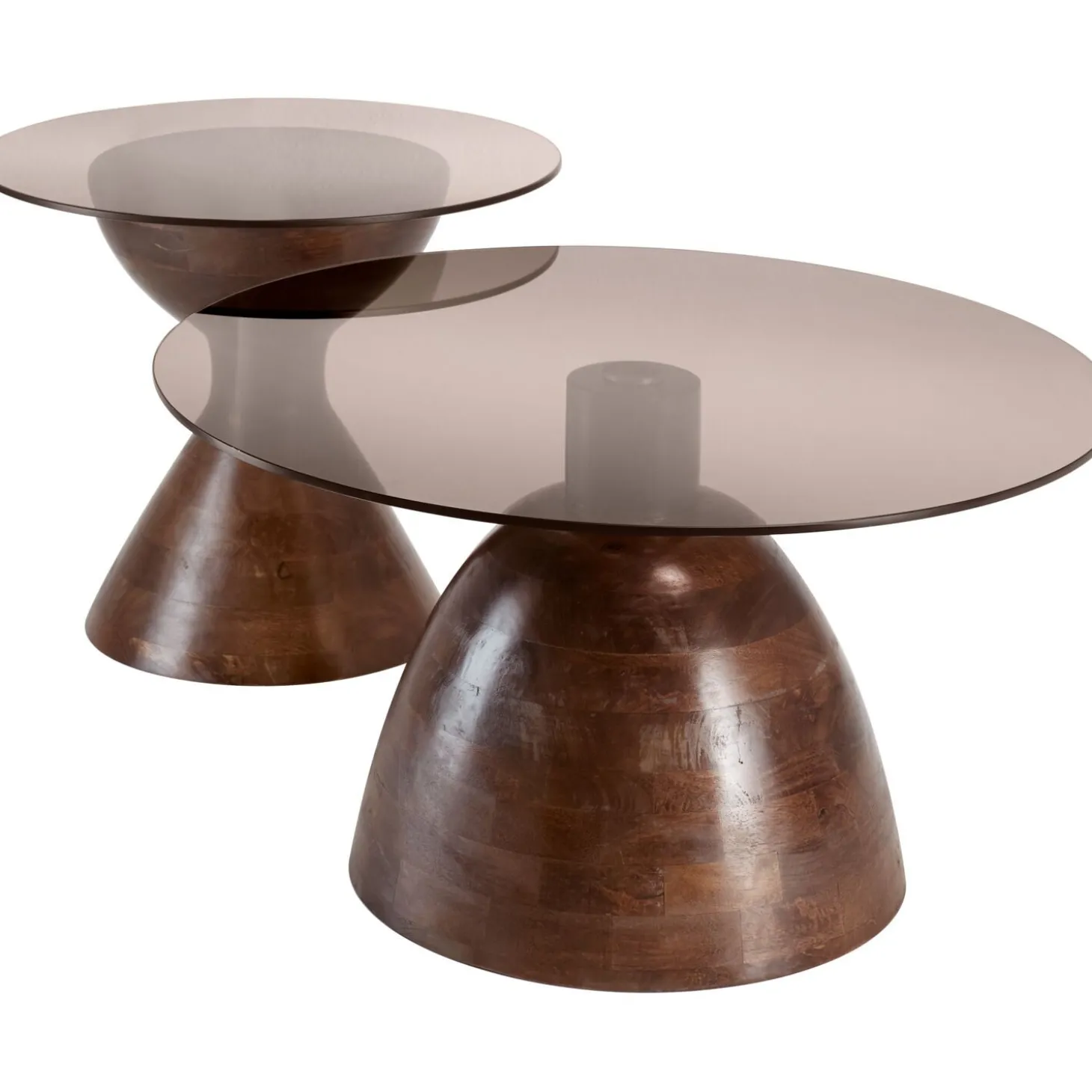 Handige salontafel die makkelijk te verplaatsen en overal inzetbaar is. Uitgevoerd met een smoked glas bovenblad en een massief mango houten onderstel in kleur bruin walnoot. Ook leverbaar als bijzettafel met afmeting Ø57 cm. Combineer de verschillende tafeltjes voor een leuk geheel.