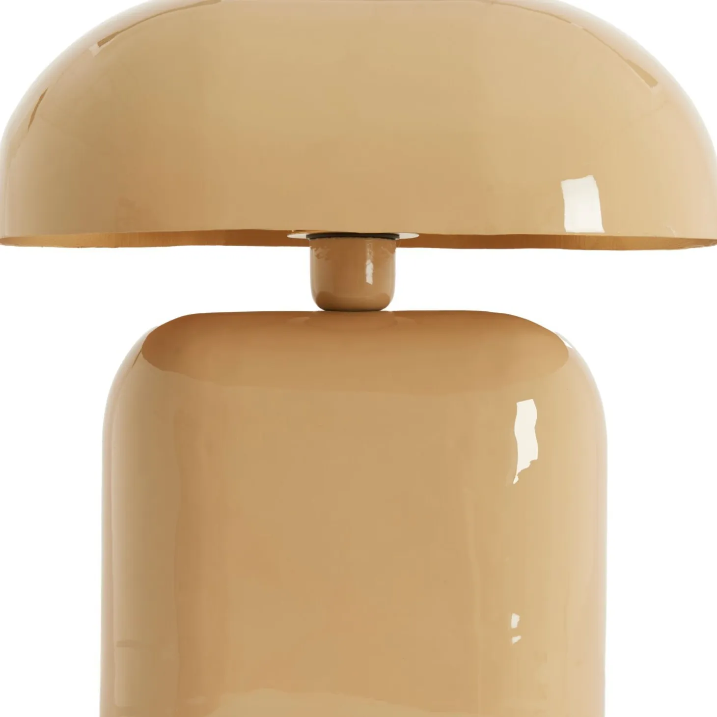 Deze tafellamp heeft een hoogte van 37 cm en een breedte van 37 cm. Het glanzende zandkleurige ontwerp maakt hem tot een elegant en opvallend accessoire, ideaal voor op een nachtkastje, bijzettafel of bureau.