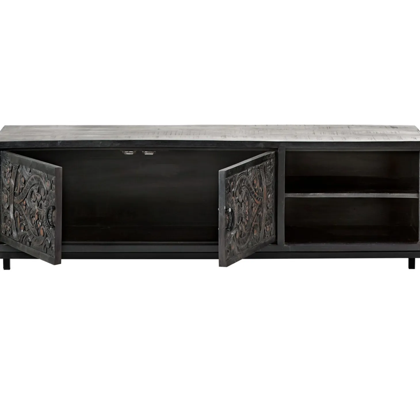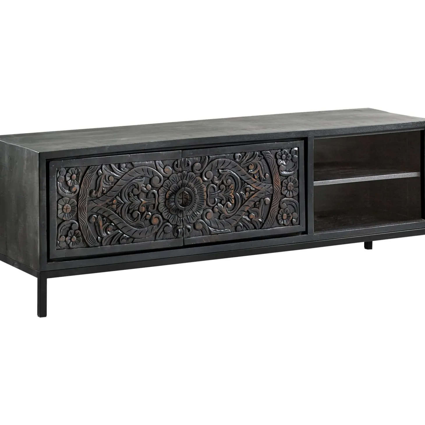 Zwart houten TV-meubel 160cm met houtsnijwerk