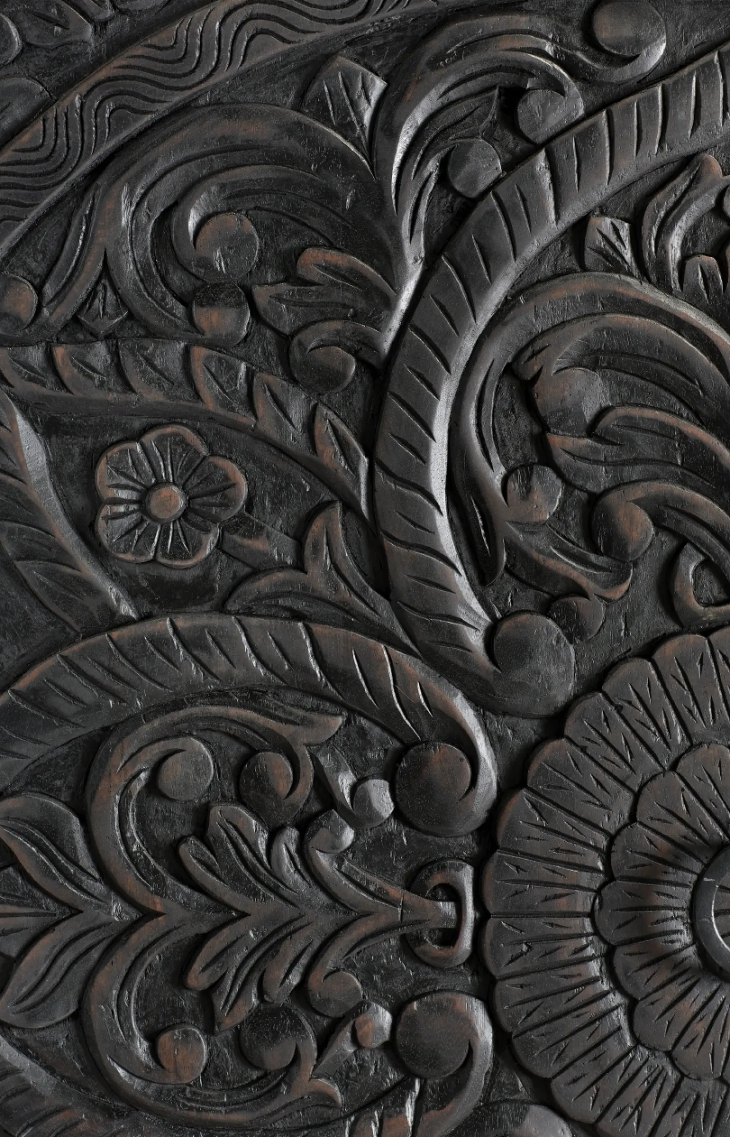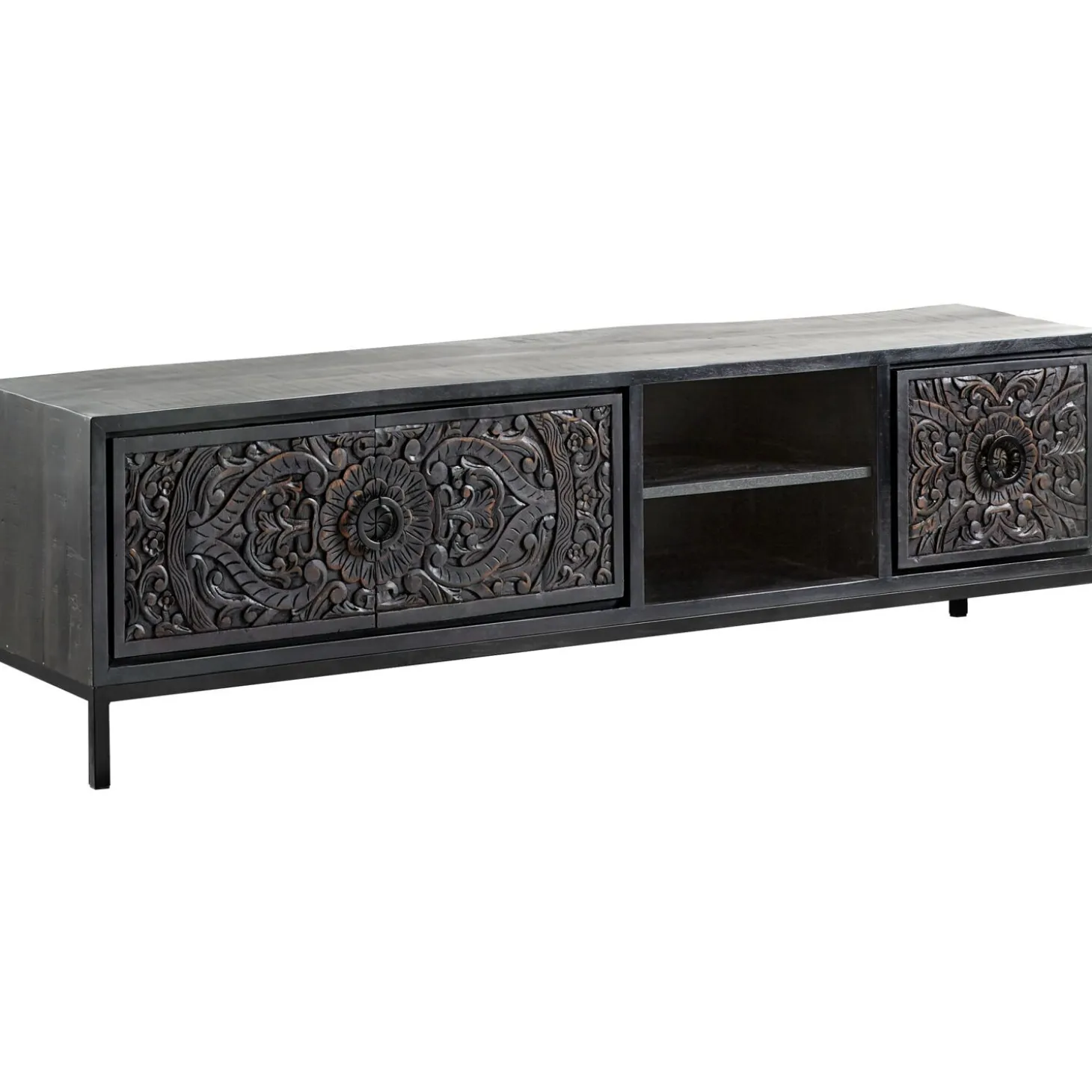 Zwart houten TV-meubel 190cm met houtsnijwerk