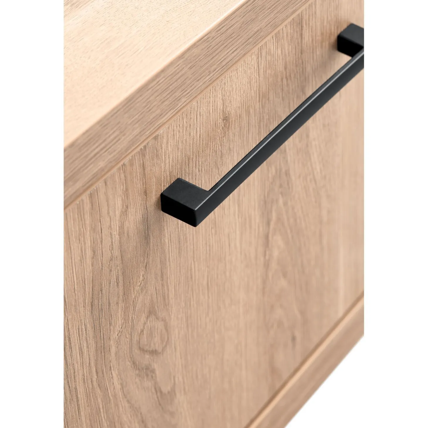 | Uitvoering | Uitgevoerd in melamine in de kleur brown cuneo oak met 2 deuren, 2 open vakken en zwart metalen poten. |