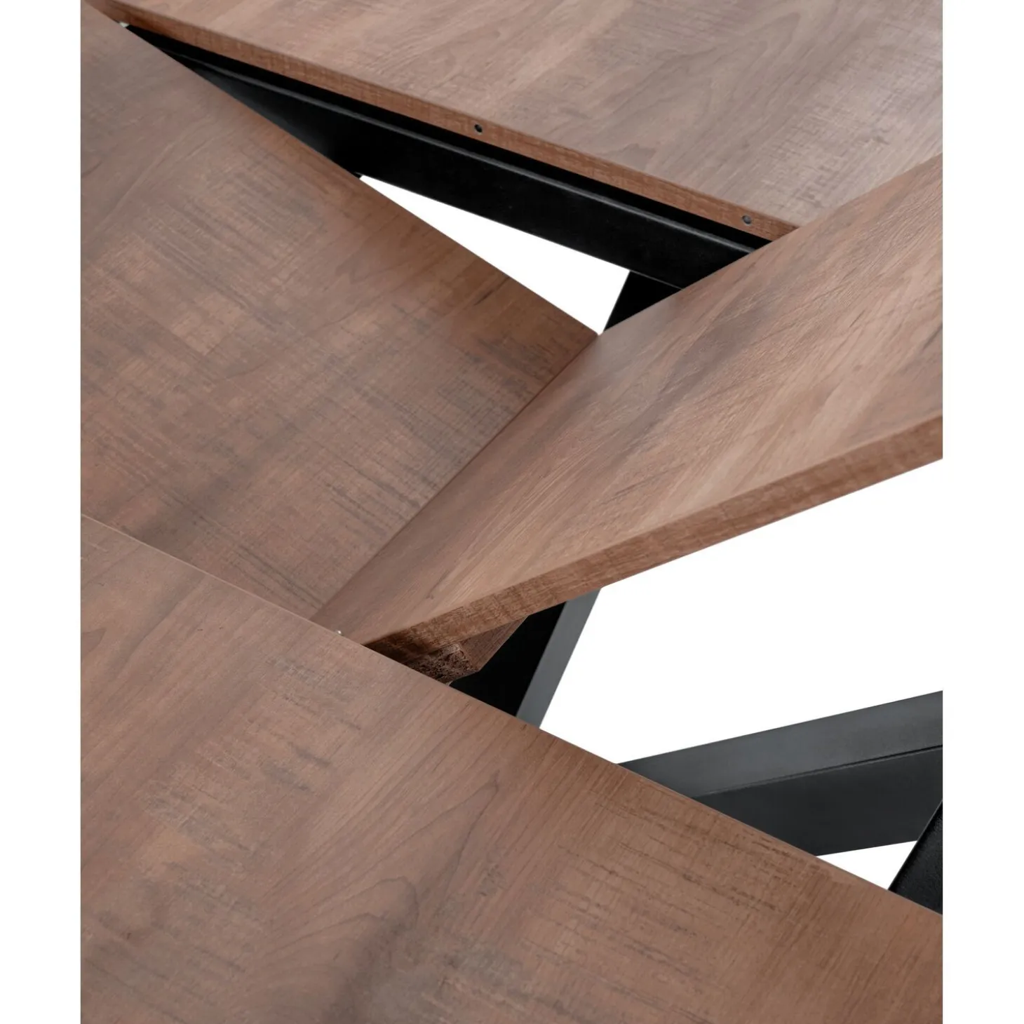 Deze eettafel heeft een mooie uitstraling door de combinatie van een zwart metalen spinpoot met melamine in een mooie donkerbruine kleur. Melamine lijkt op echt hout, het is makkelijk in onderhoud en erg krasbestendig. Een erg gebruiksvriendelijke tafel dus!
