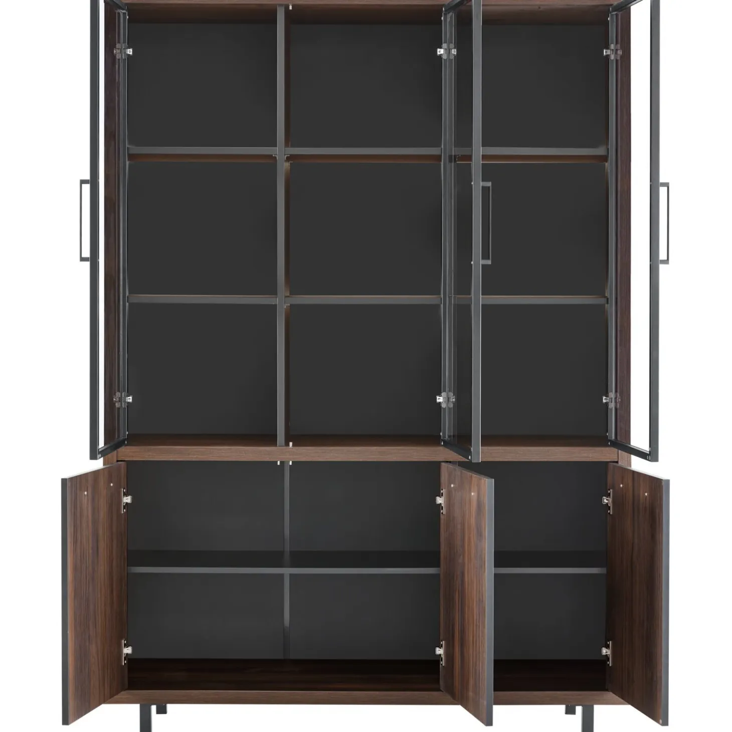 Optimaliseer jouw ruimte met de vitrinekast met 3 deuren en 3 glazen deuren, compleet met softclose technologie voor een geruisloze sluiting. De doordachte indeling omvat een handige legplank achter de deuren, en 2 legplanken achter de glazen deuren. Dit maakt deze kast niet alleen stijlvol, maar ook functioneel. Het meubel is voor een kleine meerprijs ook te verkrijgen met in de glazen deuren.