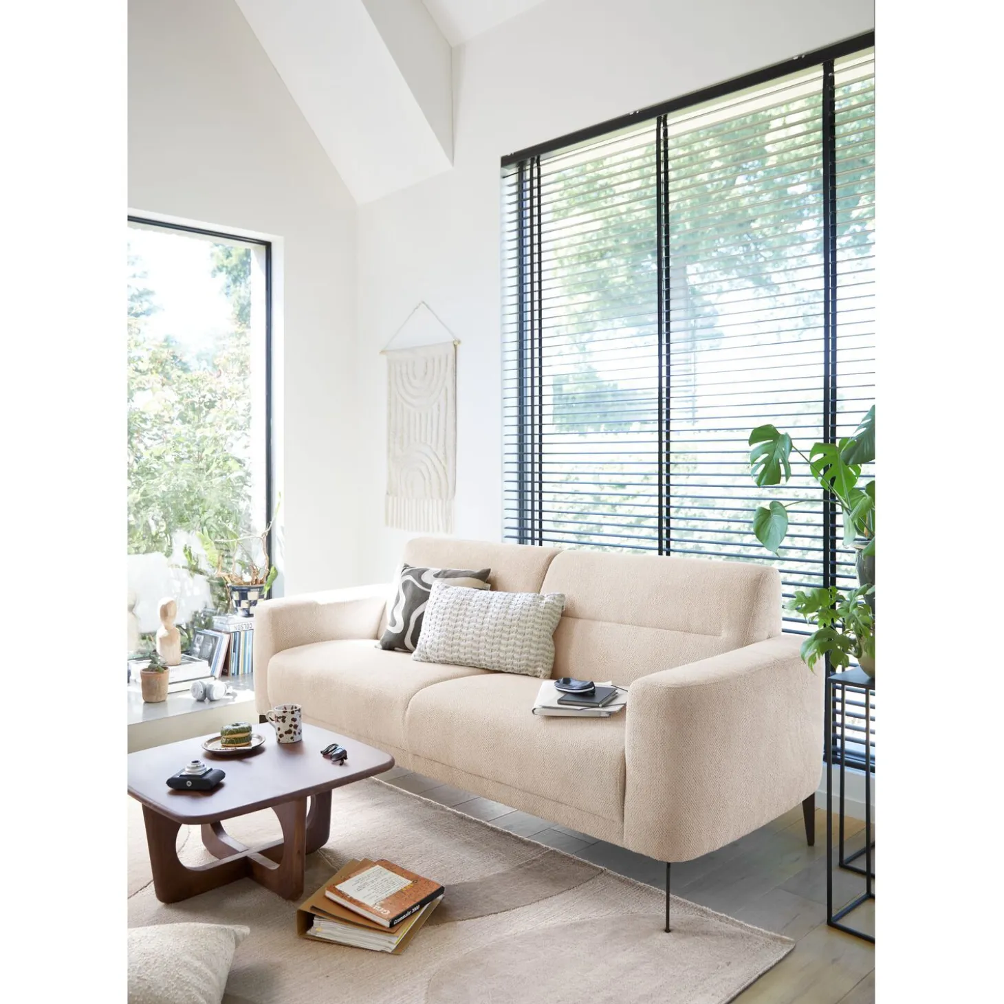 Bank Heria heeft een strakke vormgeving, maar heeft wel net iets extra’s door de extra stiknaad in de wat hogere rug. De bank is bekleed met de sterke en slijtvaste weefstof Macan in een mooie beige tint. De rechte bank neemt minder ruimte in beslag dan een hoekbank, perfect voor kleinere ruimtes! De moderne zwart metalen poten moeten nog gemonteerd worden. Met de bijgesloten montagehandleiding is dit zo gebeurd.