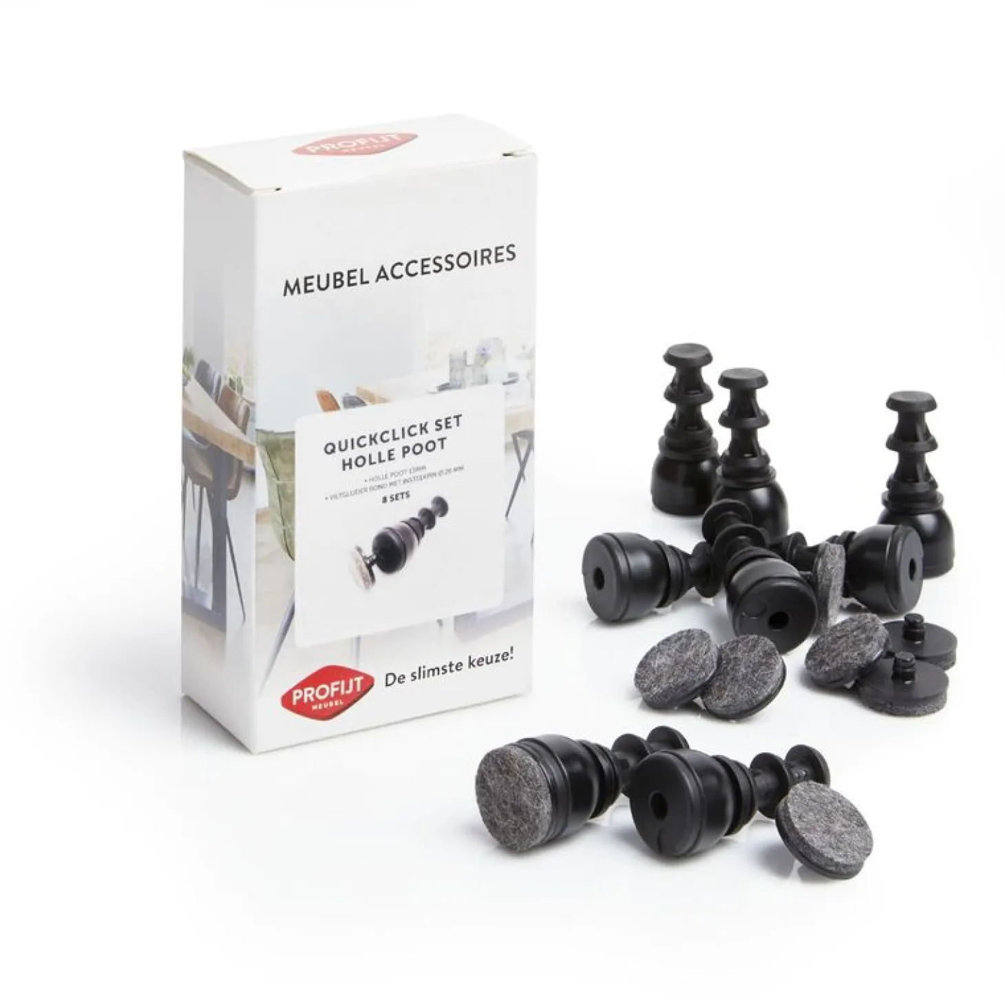 | Uitvoering | Voor stoelen met staande holle poot, 8 stuks (voor 2 stoelen) per doosje |