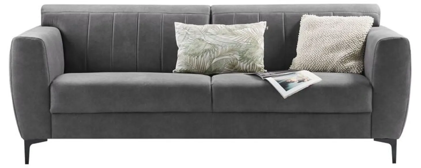 De banken zijn uitgevoerd in een donkergrijze microvezelstof. Deze stof met luxe uitstraling is opgebouwd uit synthetische vezels, waardoor deze erg sterk is. Desondanks voelt hij erg zacht aan. Bovendien is de stof makkelijk in onderhoud, en erg geschikt voor intensief gebruik. De zwarte metalen poten voegen een vleugje elegantie en duurzaamheid toe aan het geheel.