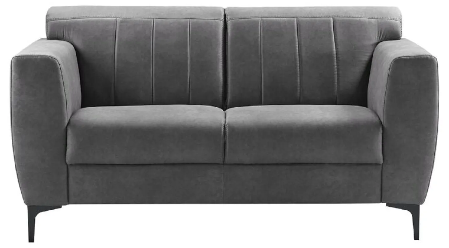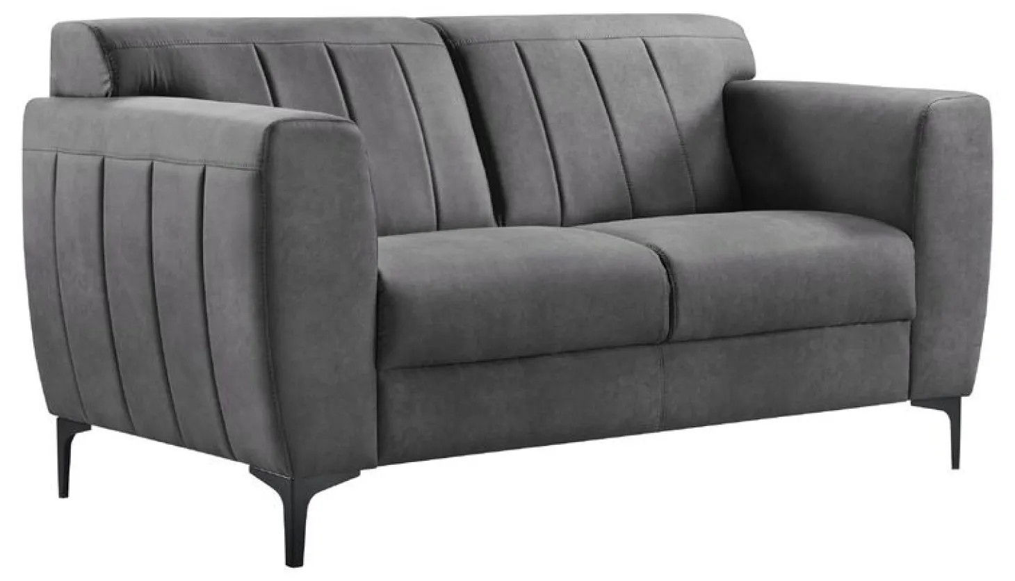 De banken zijn uitgevoerd in een donkergrijze microvezelstof. Deze stof met luxe uitstraling is opgebouwd uit synthetische vezels, waardoor deze erg sterk is. Desondanks voelt hij erg zacht aan. Bovendien is de stof makkelijk in onderhoud, en erg geschikt voor intensief gebruik. De zwarte metalen poten voegen een vleugje elegantie en duurzaamheid toe aan het geheel.