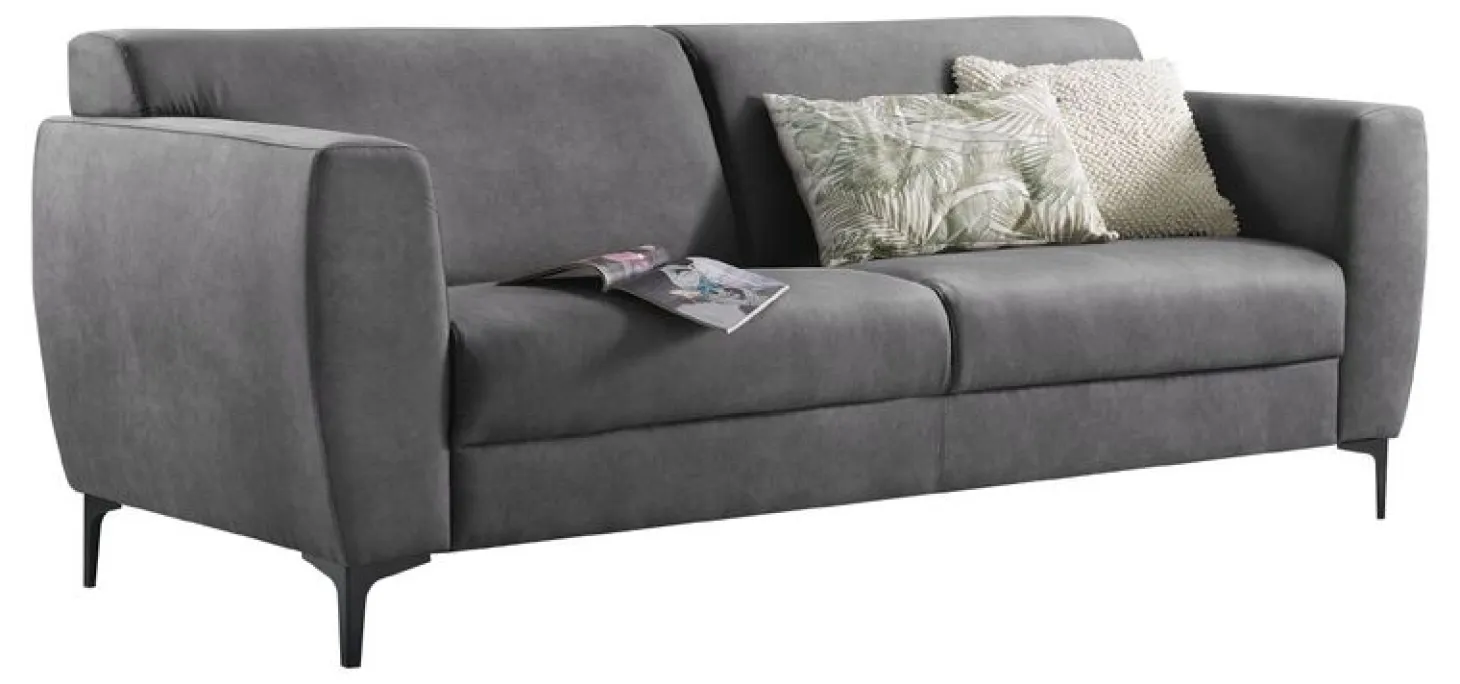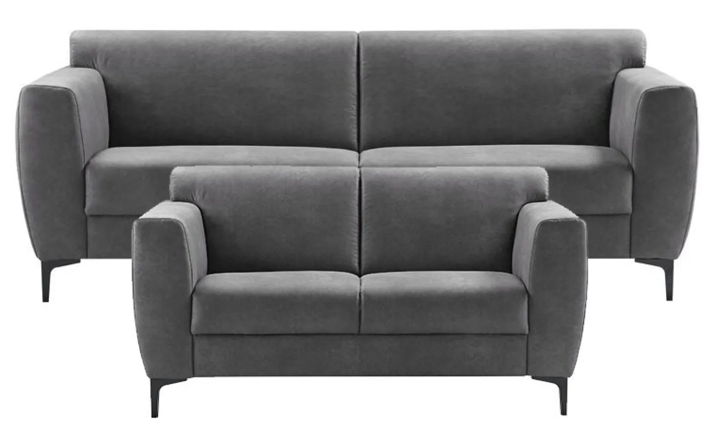 De banken zijn uitgevoerd in een donkergrijze microvezelstof. Deze stof met luxe uitstraling is opgebouwd uit synthetische vezels, waardoor deze erg sterk is. Desondanks voelt hij erg zacht aan. Bovendien is de stof makkelijk in onderhoud, en erg geschikt voor intensief gebruik. De zwarte metalen poten voegen een vleugje elegantie en duurzaamheid toe aan het geheel.