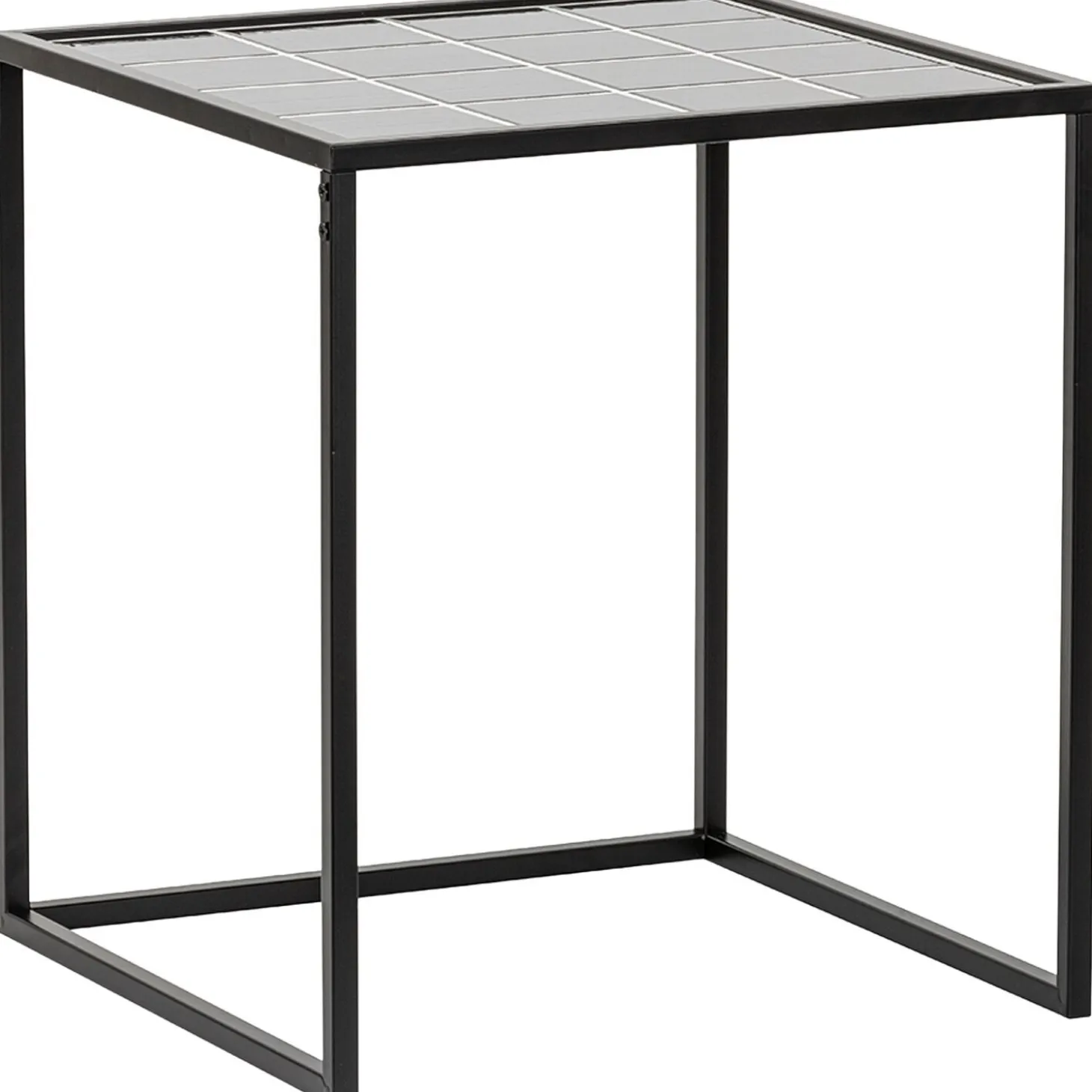 | Uitvoering | Uitgevoerd met een blad van zwarte tegeltjes en een zwart metalen frame. |