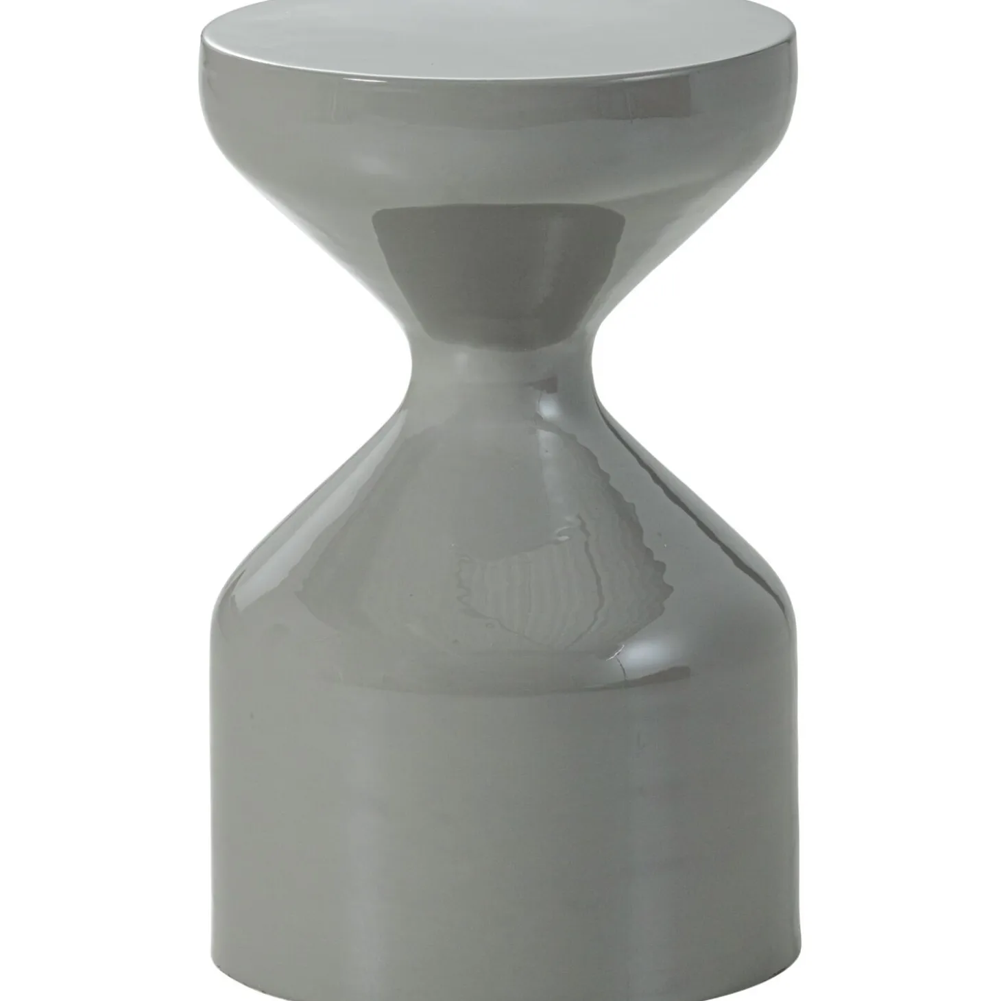 Deze bijzettafel heeft een ronde vorm en is gemaakt van metaal. De tafel is in het midden smaller en loopt naar boven en beneden breder uit. Hierdoor krijgt hij een speels maar rustig uiterlijk. Het tafelblad is rond en heeft een diameter van 30 cm. De totale hoogte van de tafel is 47 cm.