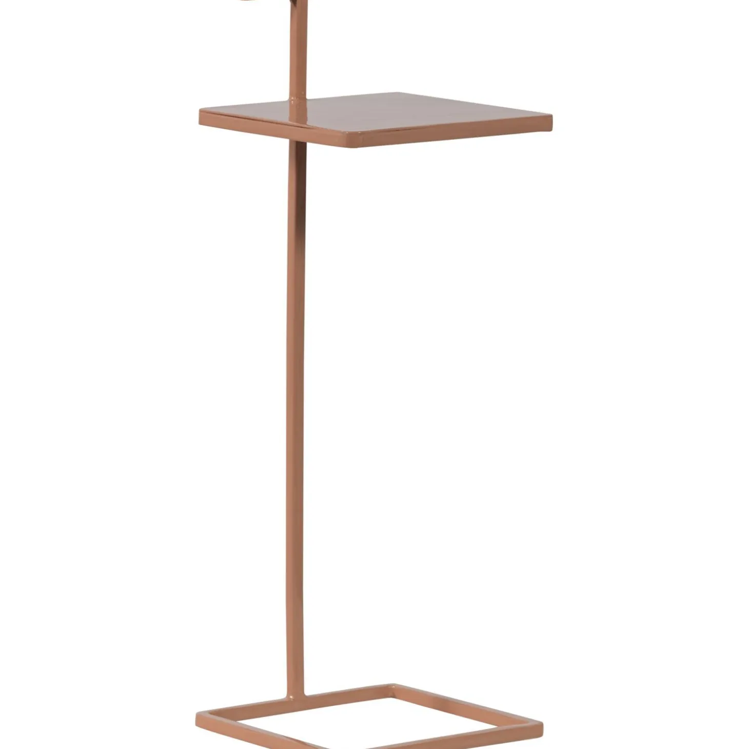 Deze bijzettafel heeft een vierkant tafelblad van 22 cm breed en een strak metalen frame in dezelfde oudroze kleur, waardoor het een mooi en harmonieus geheel vormt. De hoogte van 64 cm maakt de tafel perfect om naast een fauteuil of bank te plaatsen, bijvoorbeeld voor een kopje koffie, boek of decoratie.