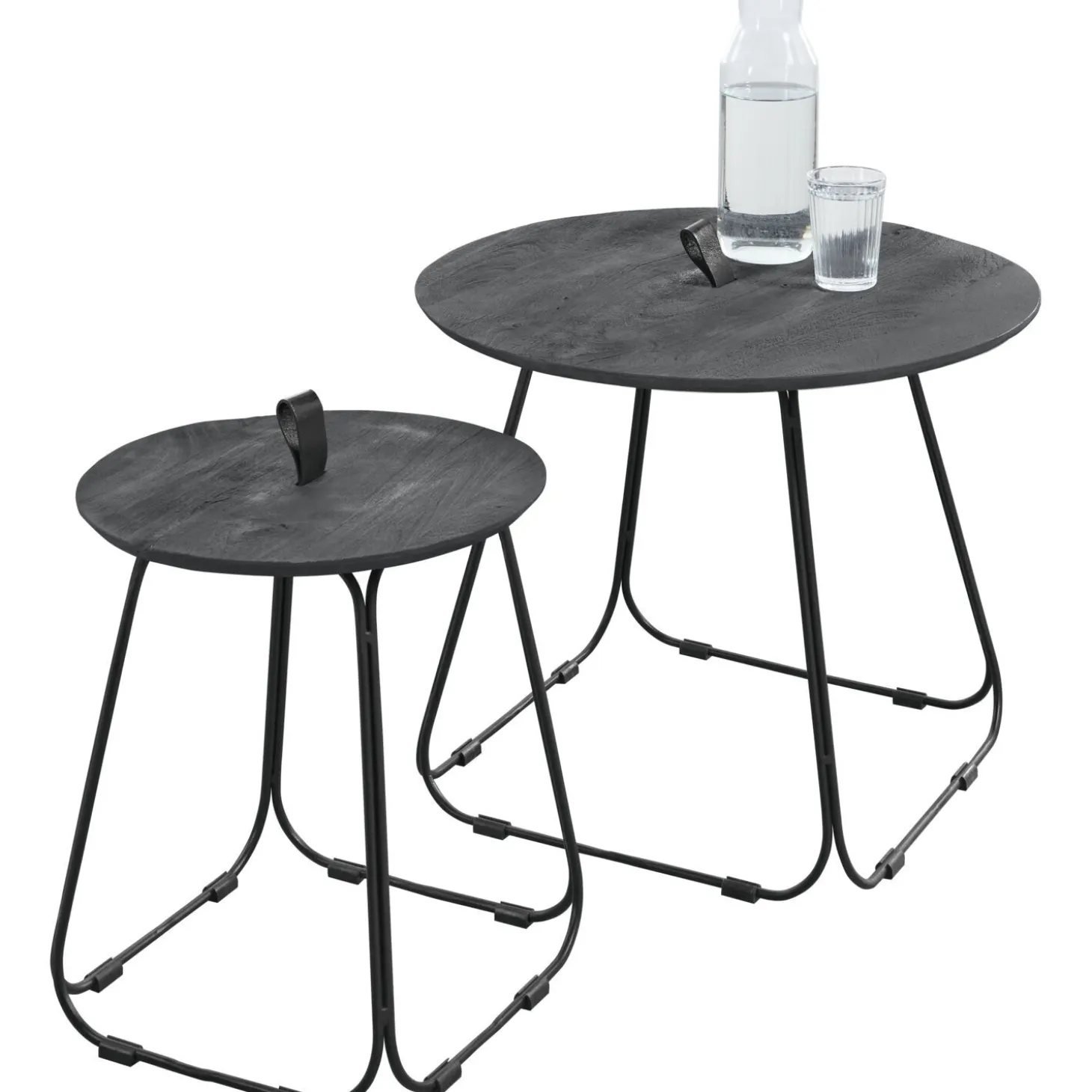 Geef je interieur een stoere touch met de Monroy bijzettafelset in zwart brushed mango. Dankzij de handige lus verplaats je ze moeiteloos. Stijl en gemak in één.