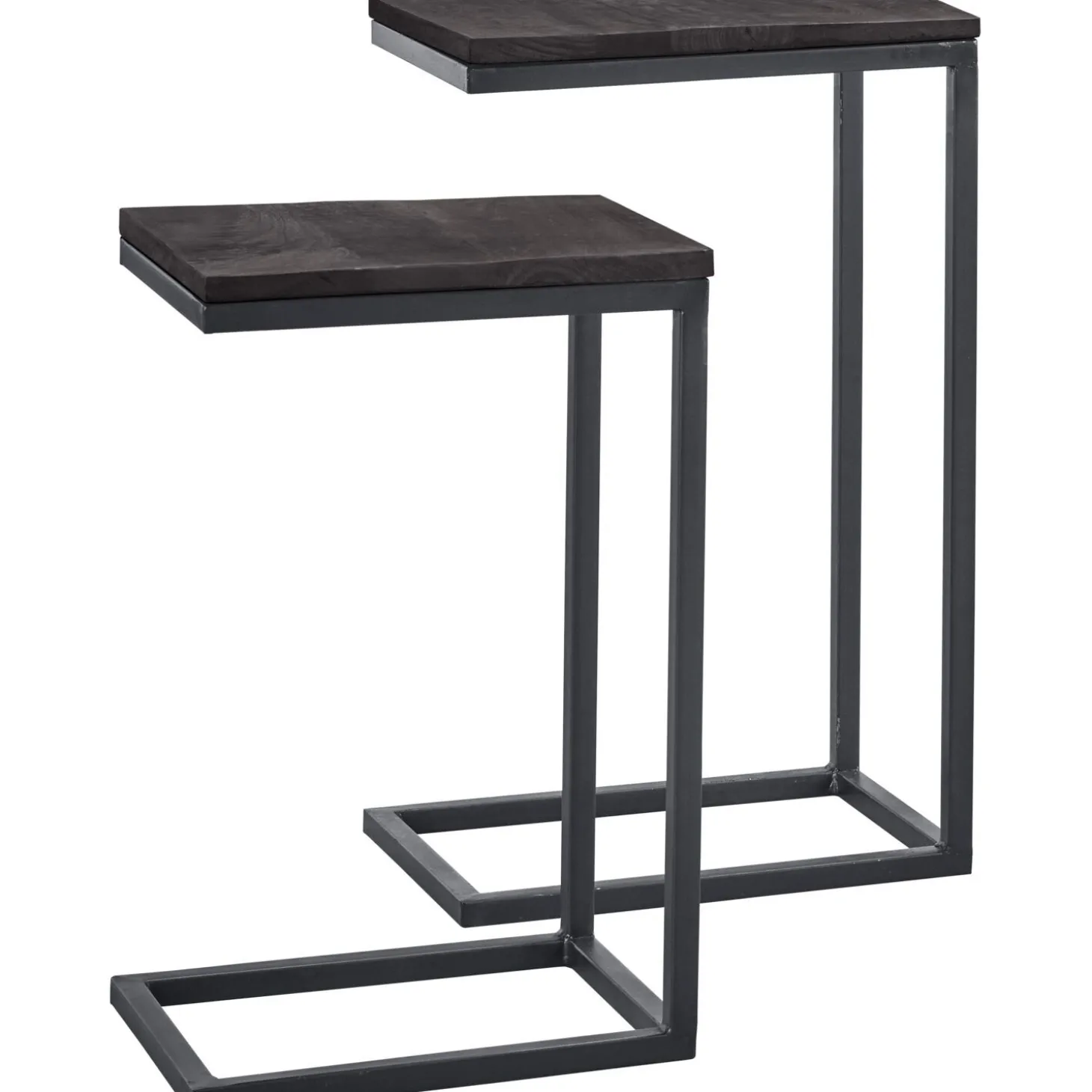 Bijzettafelset van mangohout in kleur zwart met metalen frame