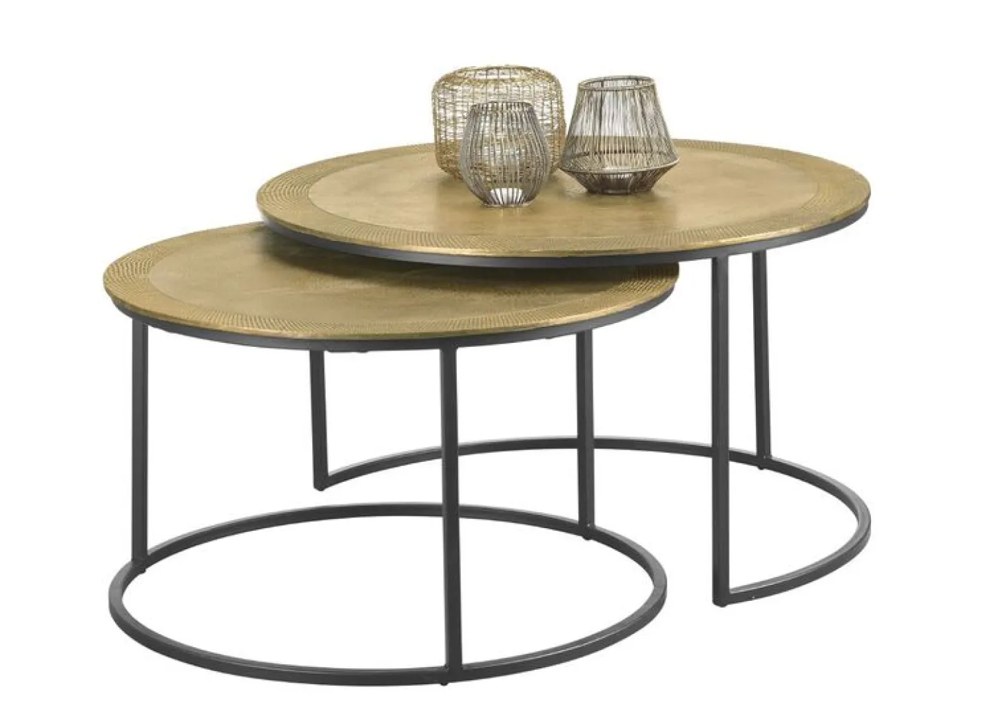 | Uitvoering | Uitgevoerd met blad in aluminium met randafwerking in brass antique en zwart metalen gepoedercoat onderstel. |