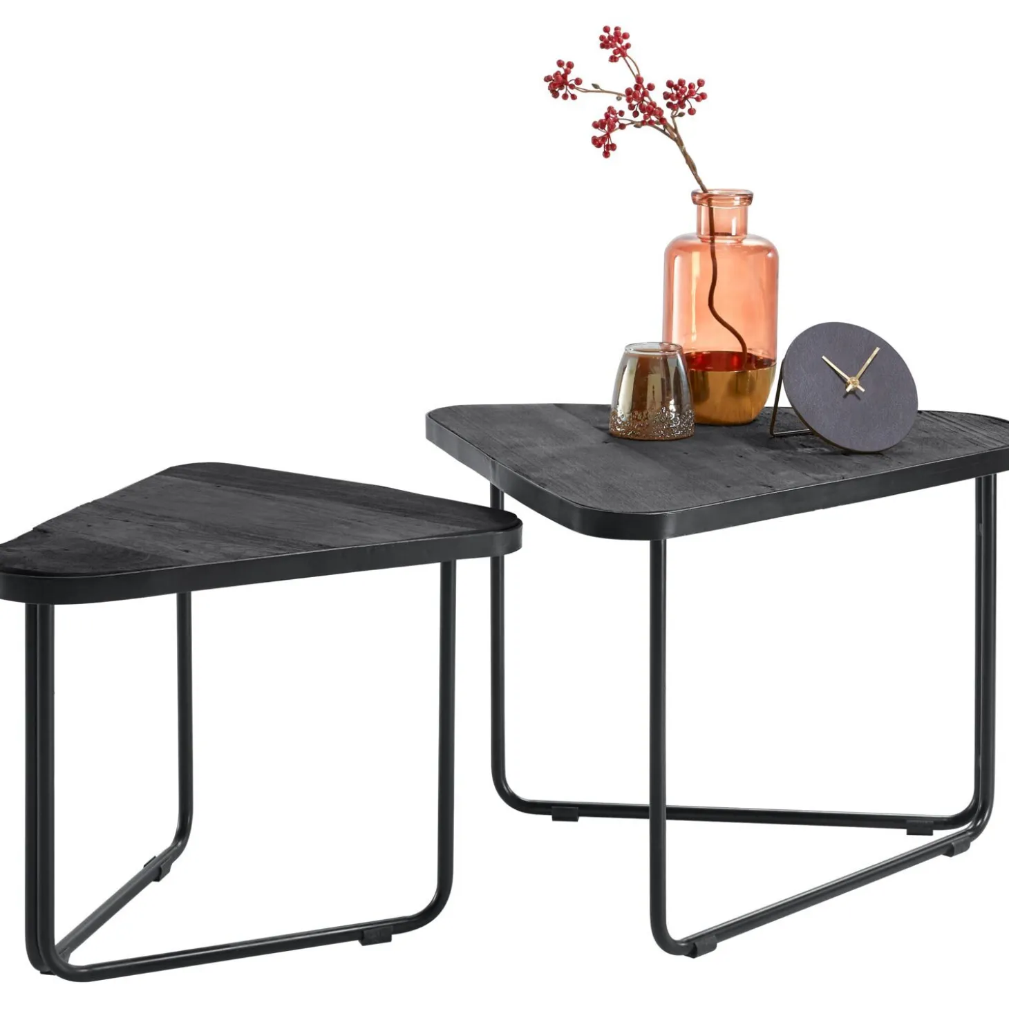 | Uitvoering | Uitgevoerd met blad in burned mangohout in de kleur zwart en zwart metalen onderstel. |